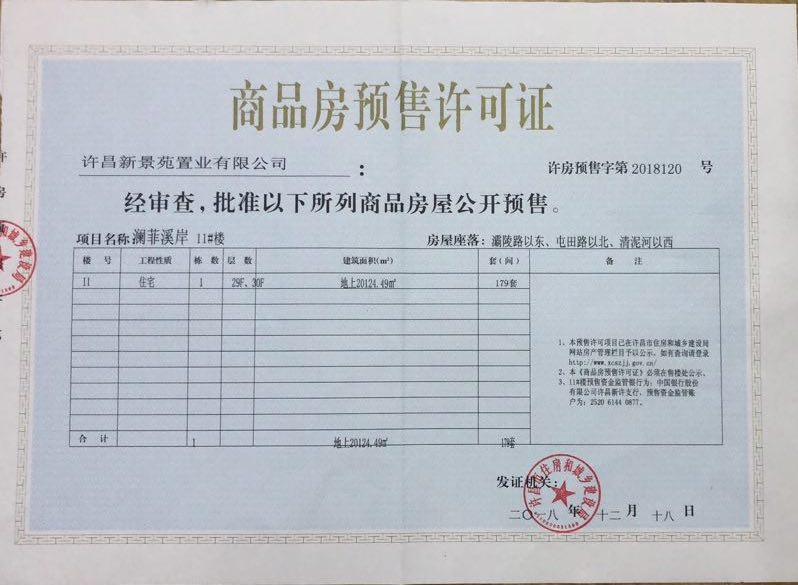 许房预售字第2018120号(许昌新景苑置业有限公司)