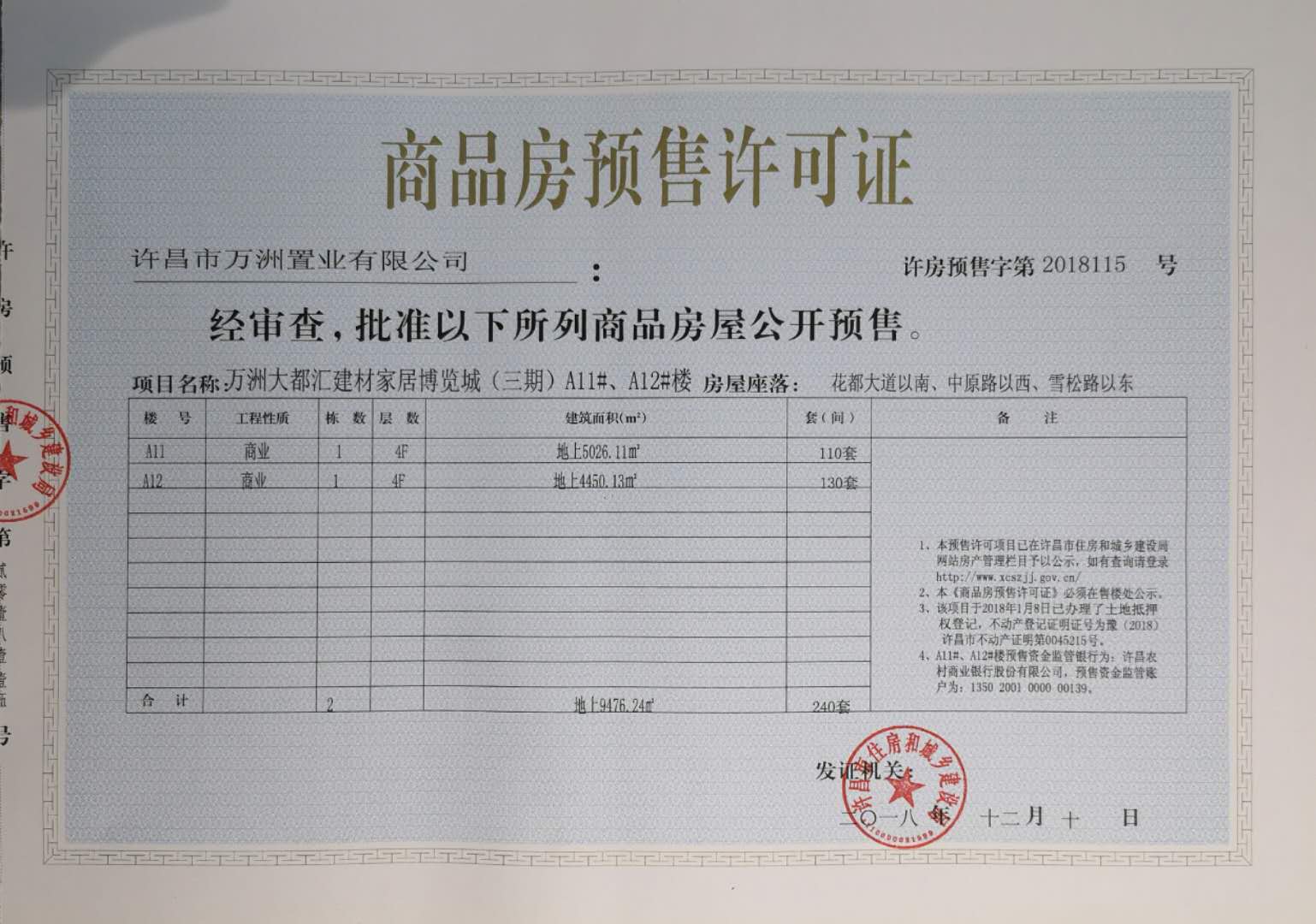 许房预售字第2018115号(许昌市万洲置业有限公司)