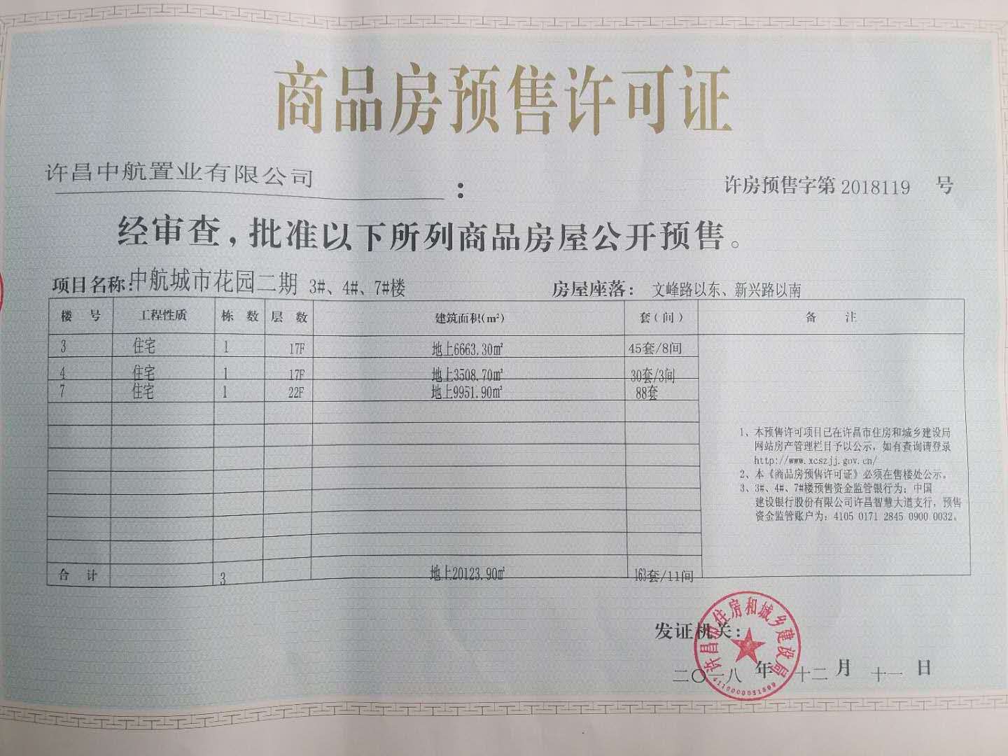 许房预售字第2018119号(许昌中航置业有限公司)