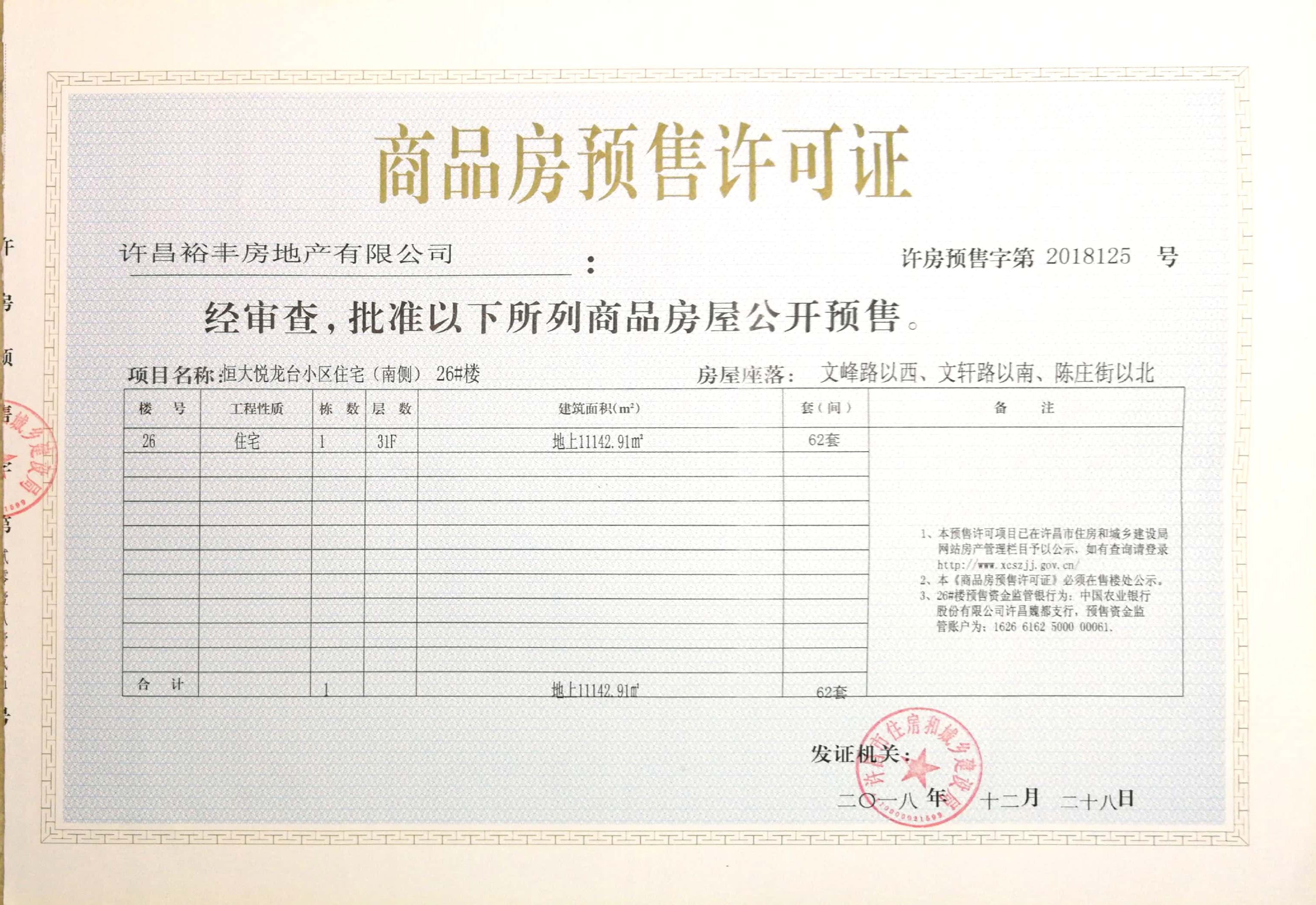 许房预售字第2018125号(许昌裕丰房地产有限公司)