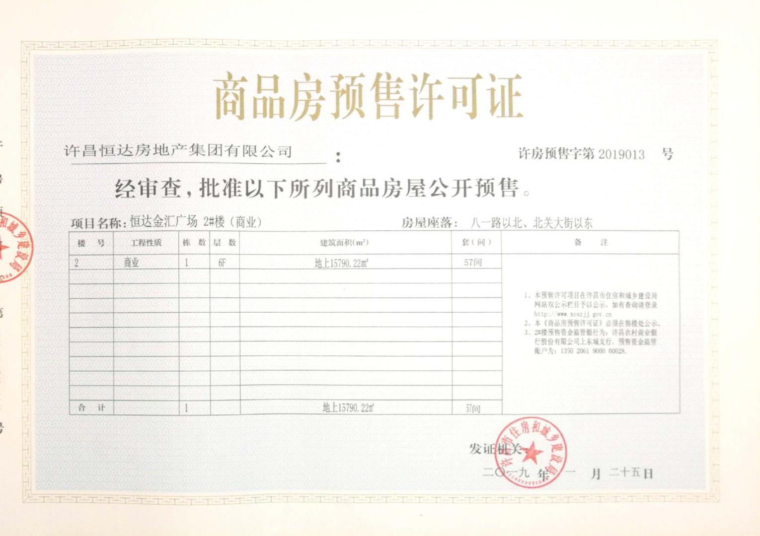 许房预售字第2019013号(许昌恒达房地产集团有限公司)