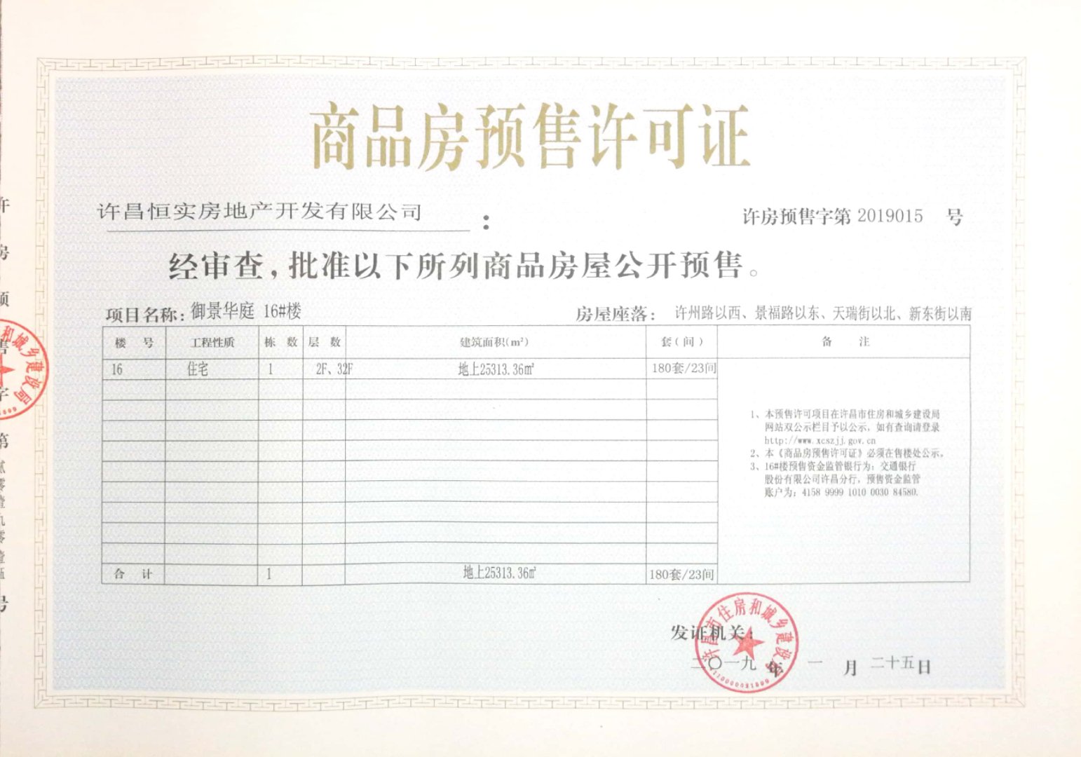 许房预售字第2019015号(许昌恒实房地产开发有限公司)