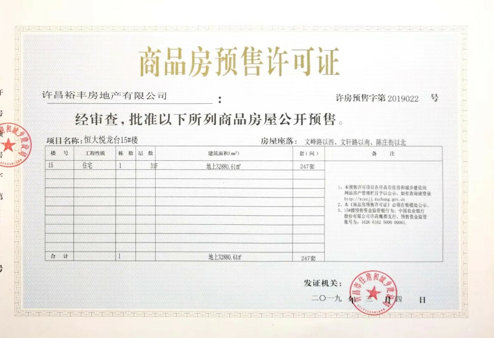 许房预售字第2019022号(许昌裕丰房地产有限公司)