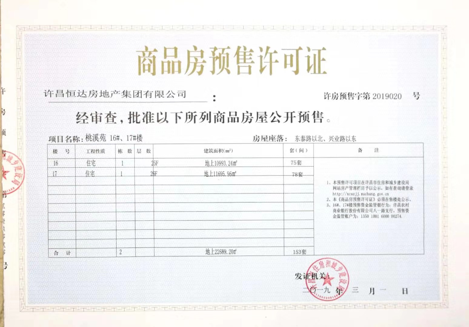 许房预售字第2019020号(许昌恒达房地产集团有限公司)