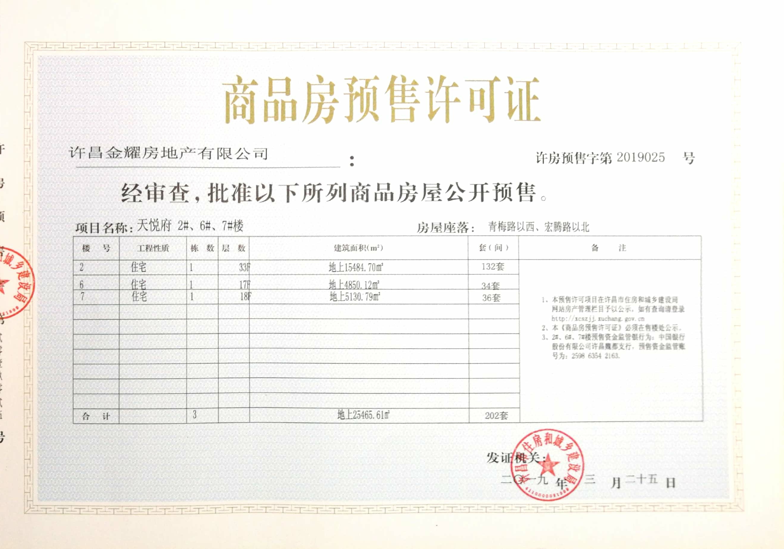 许房预售字第2019025号(许昌金耀房地产有限公司)