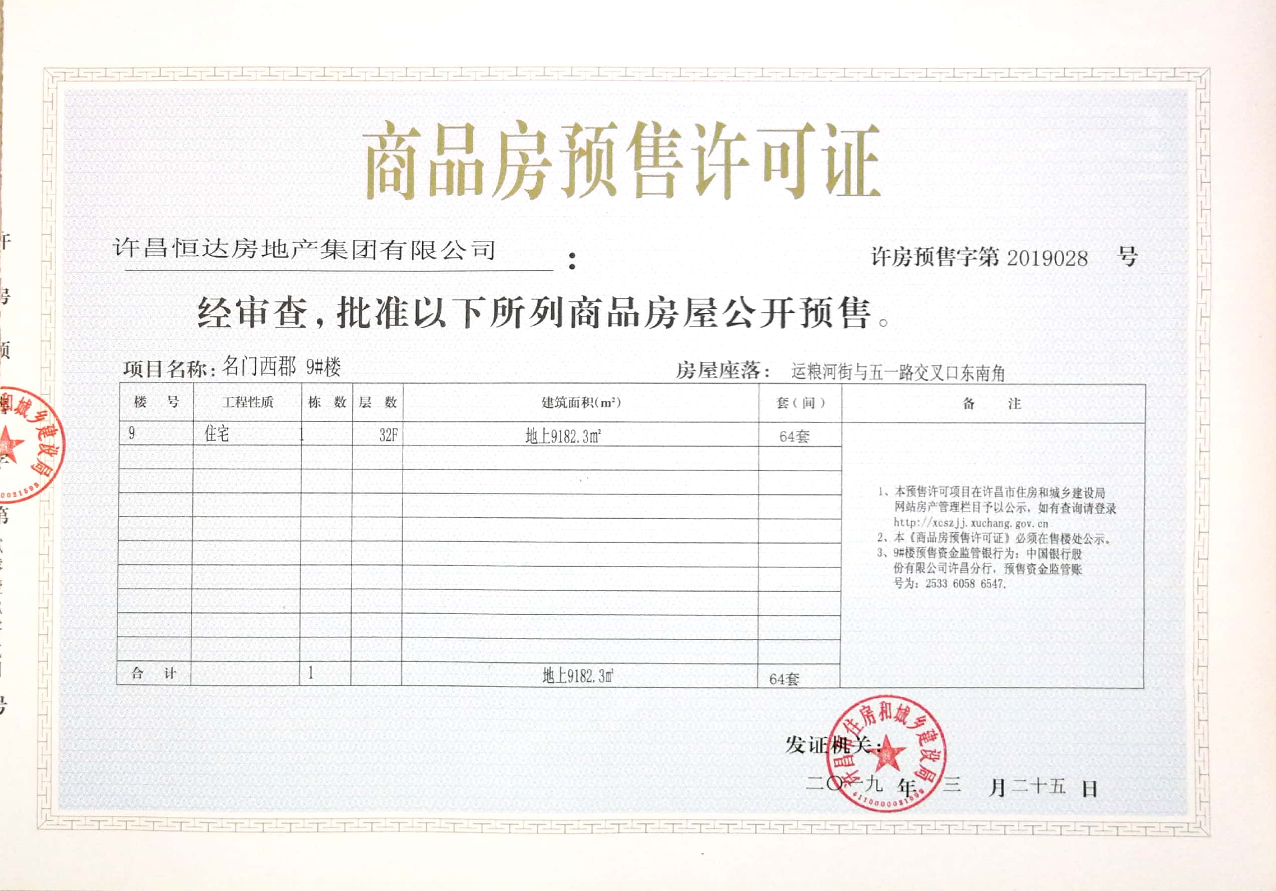 许房预售字第2019028号(许昌恒达房地产集团有限公司)