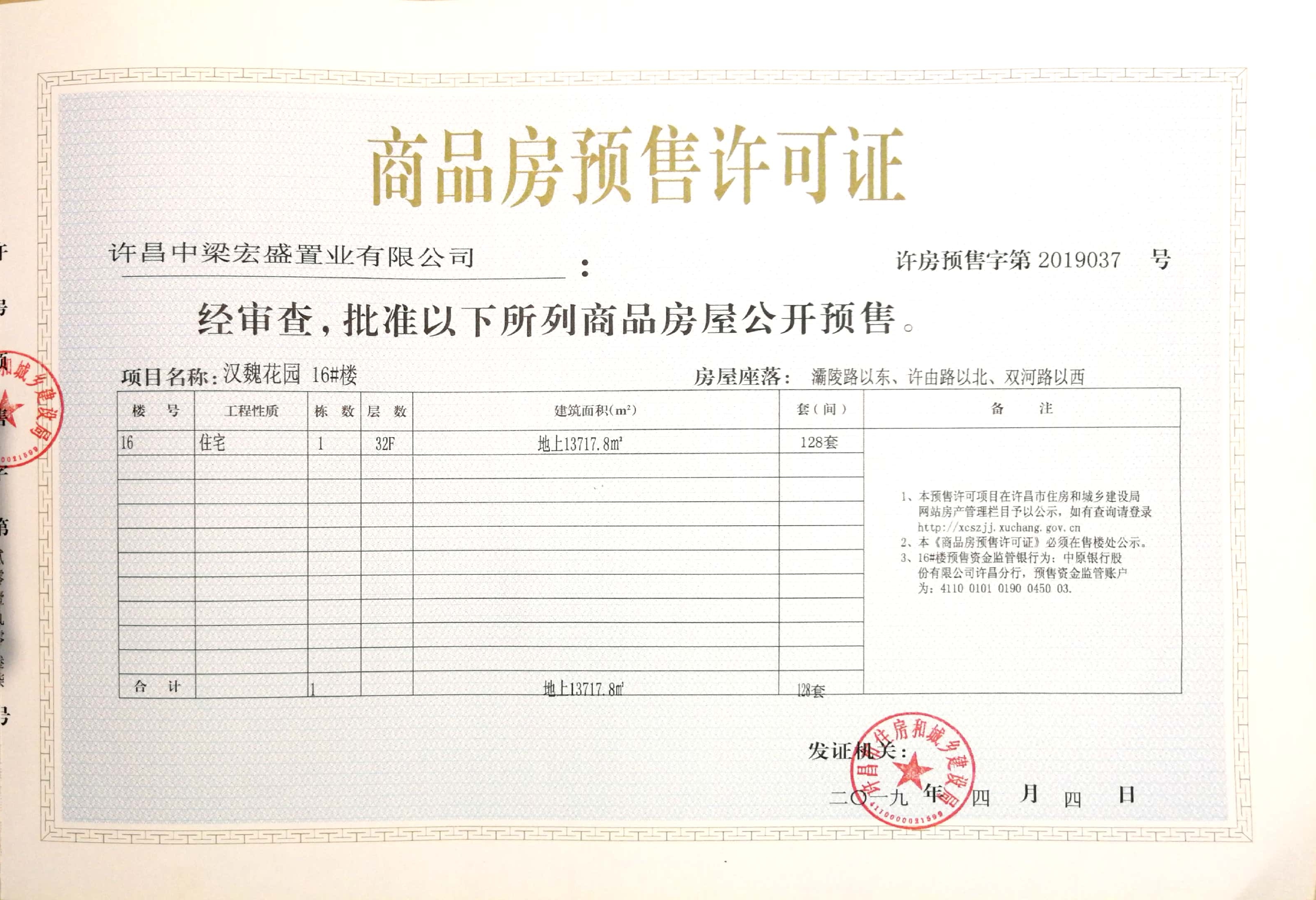 许房预售字第2019037号(许昌中梁宏盛置业有限公司)