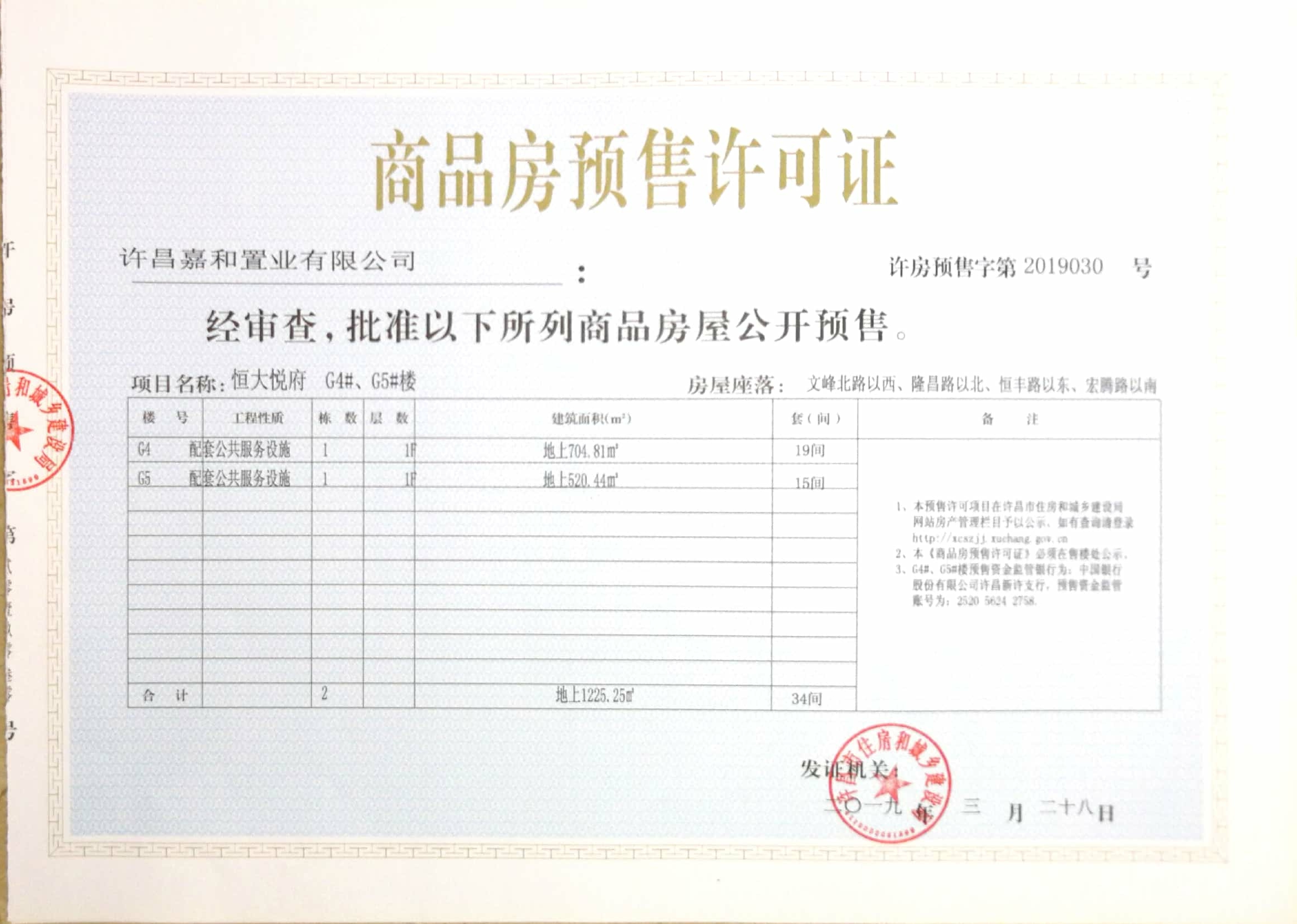 许房预售字第2019030号(许昌嘉和置业有限公司)