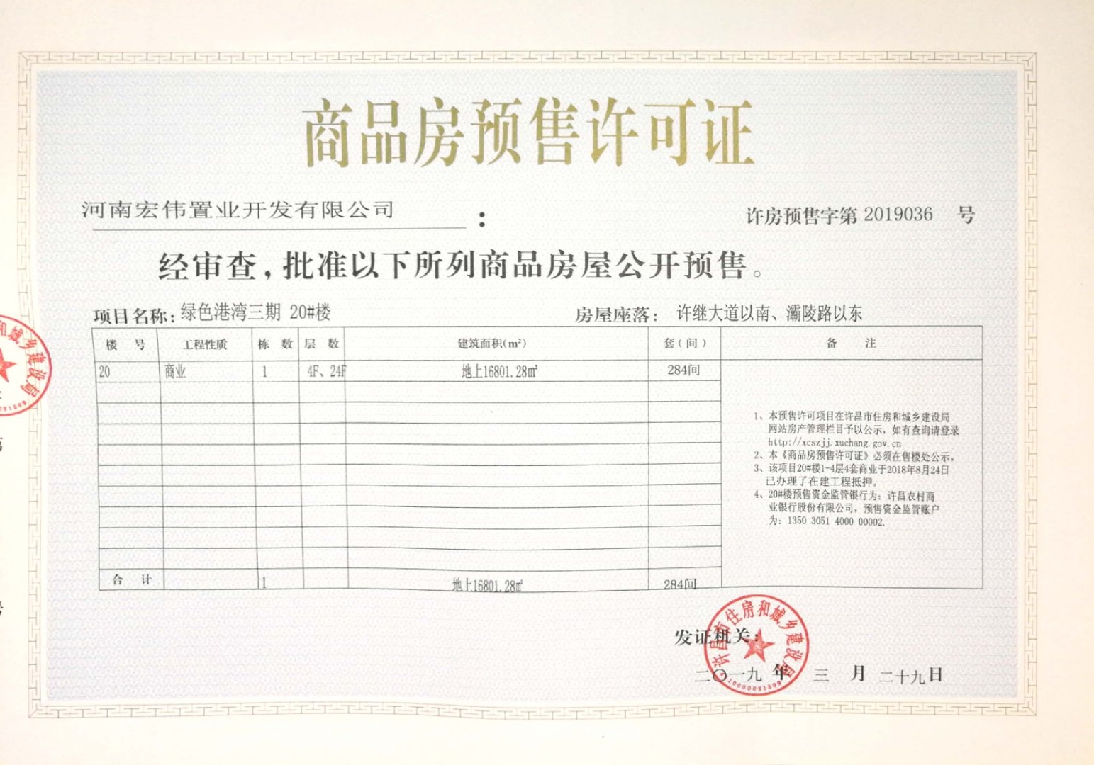 许房预售字第2019036号(河南宏伟置业开发有限公司)