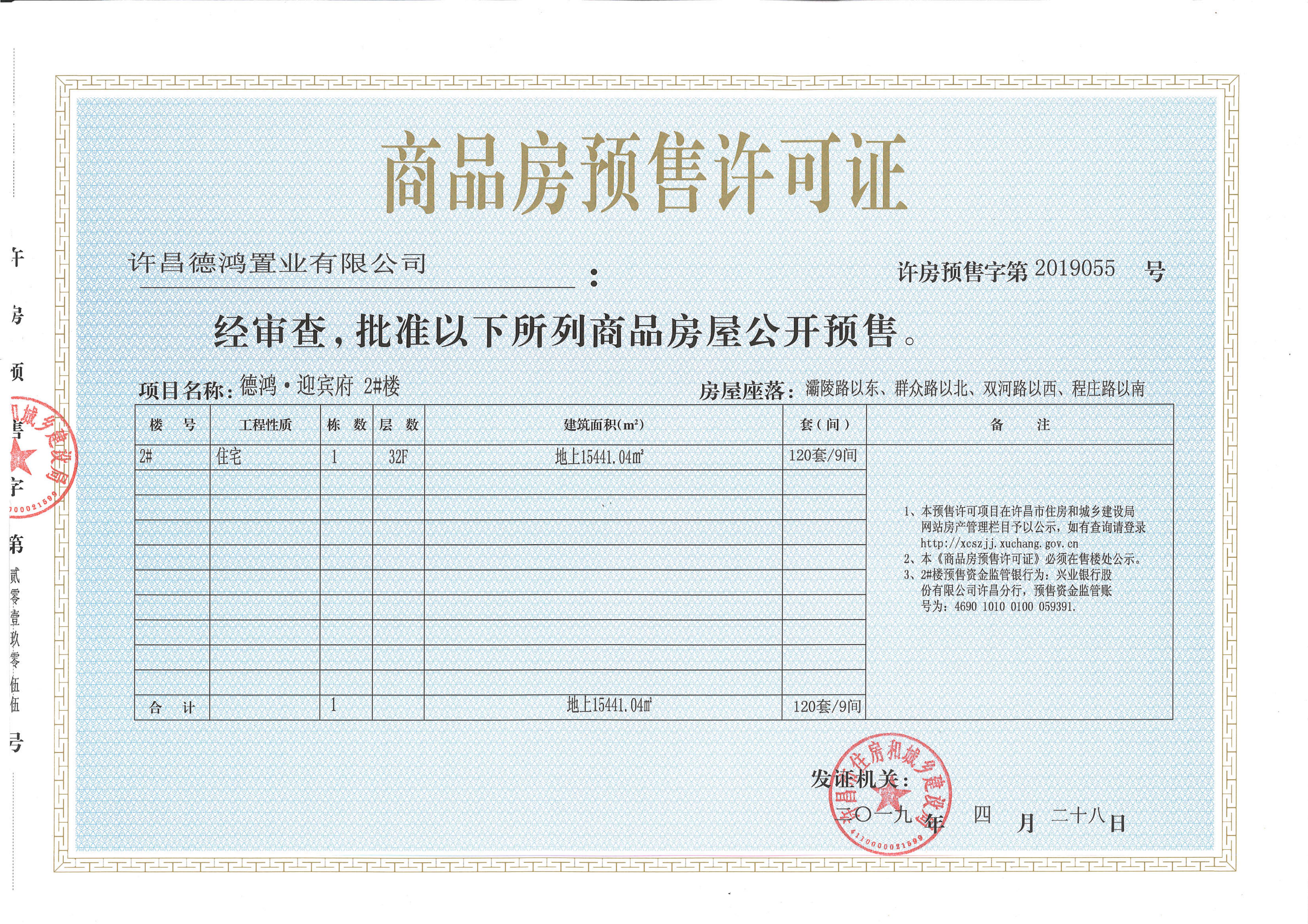 许房预售字第2019055号(许昌德鸿置业有限公司)