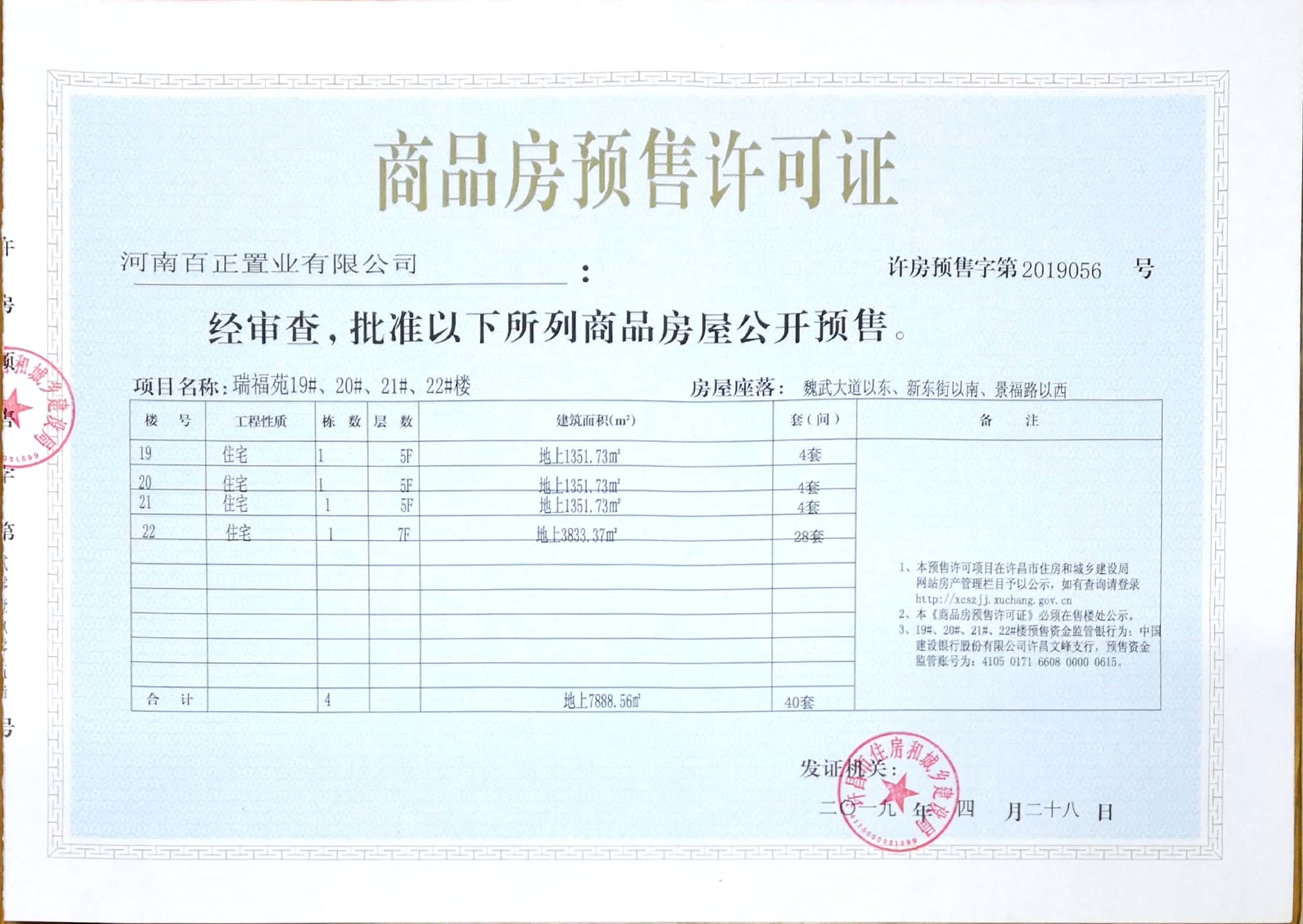 许房预售字第2019056号(河南百正置业有限公司)