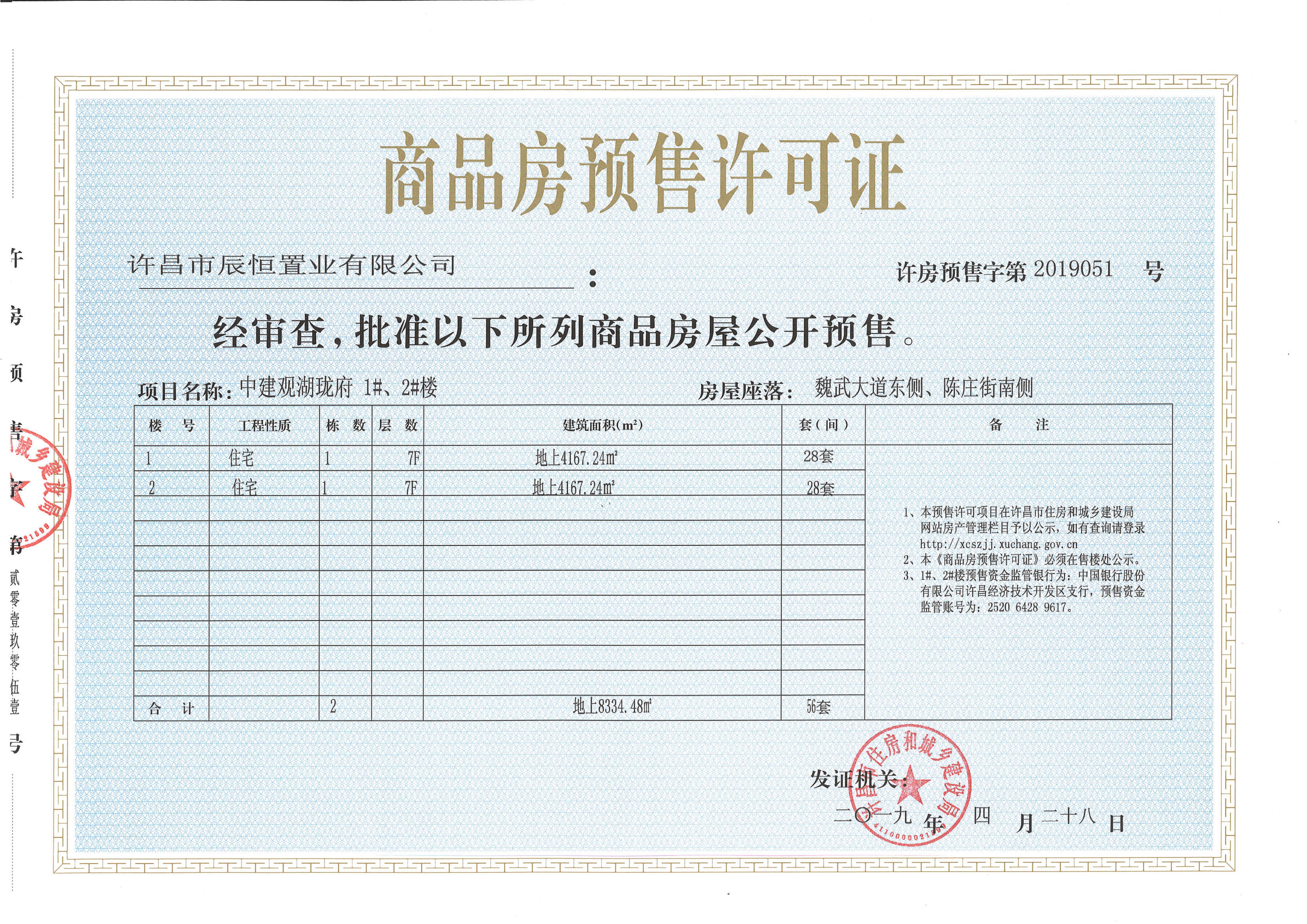 许房预售字第2019051号(许昌市辰恒置业有限公司)