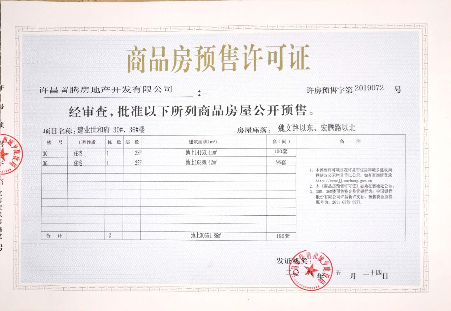 许房预售字第2019072号(许昌置腾房地产开发有限公司)