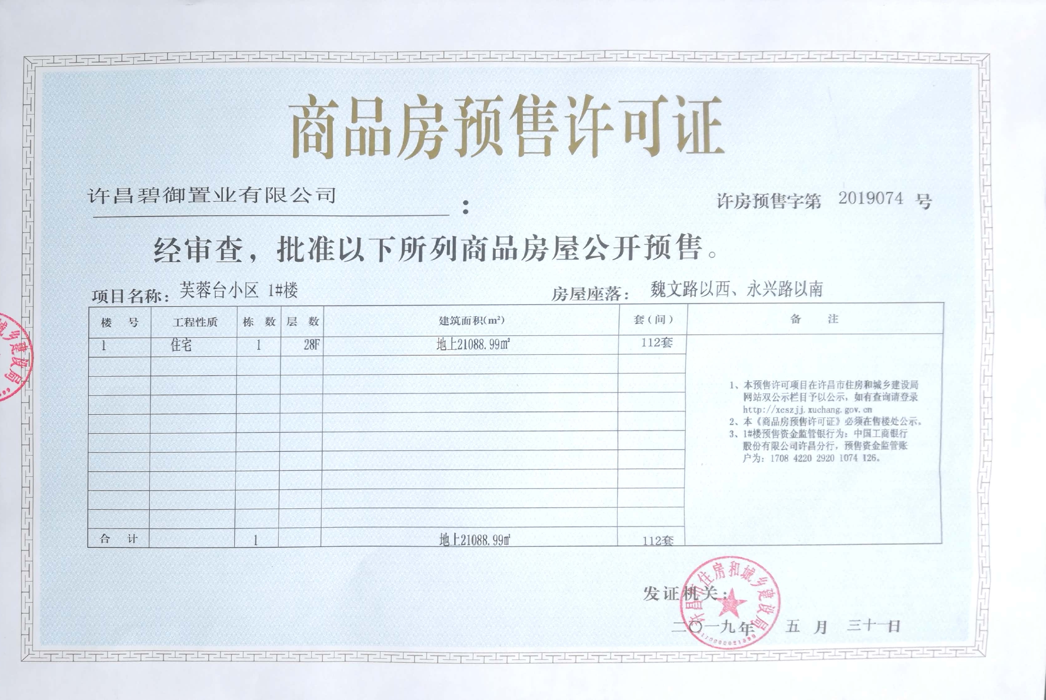 许房预售字第2019074号(许昌碧御置业有限公司)