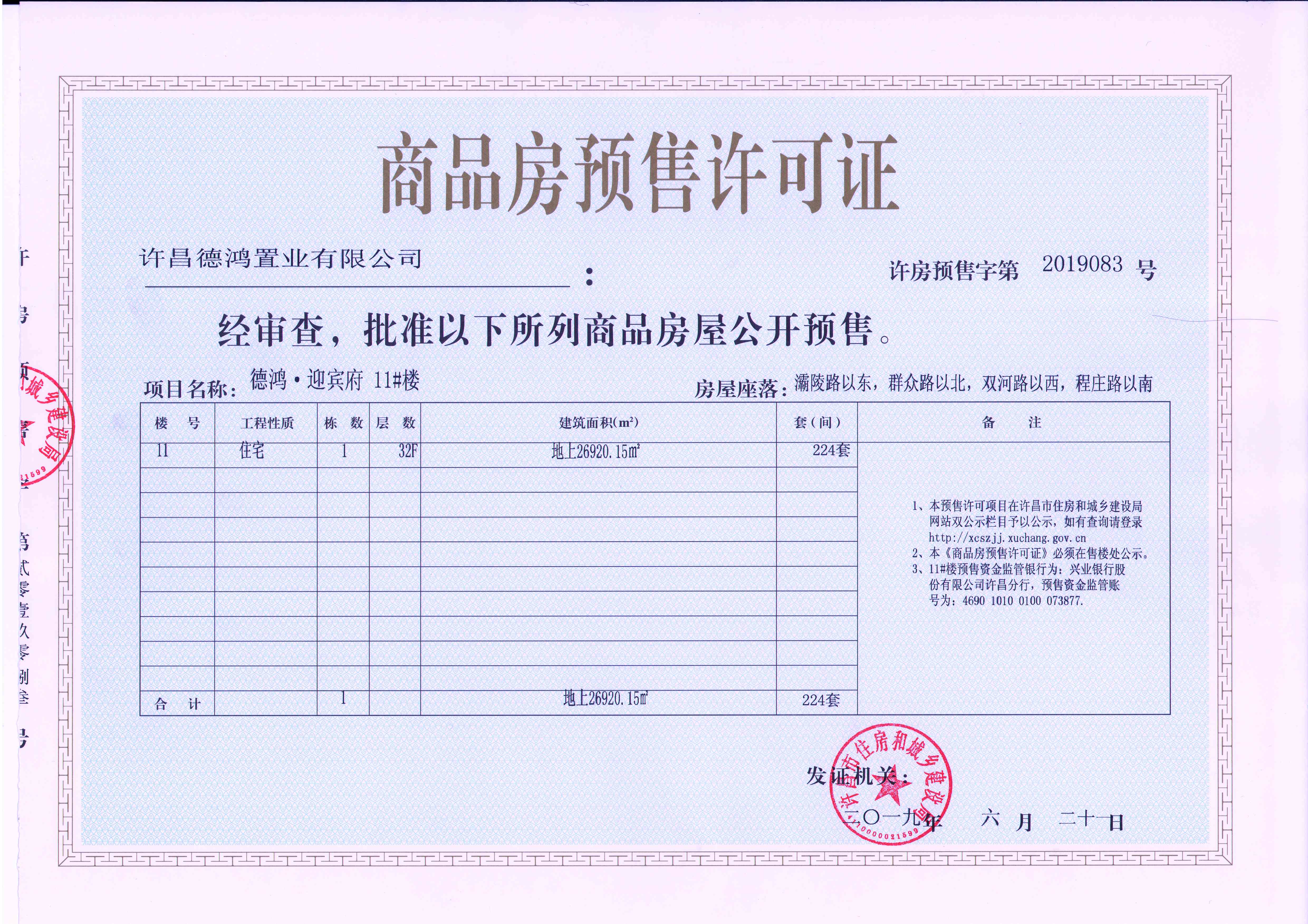 许房预售字第2019083号(许昌德鸿置业有限公司)