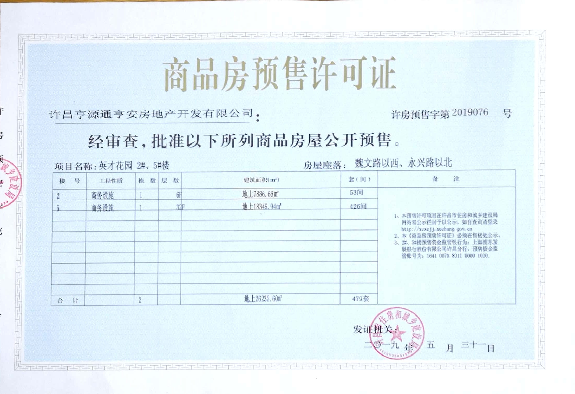 许房预售字第2019076号(许昌亨源通房地产开发有限公司)