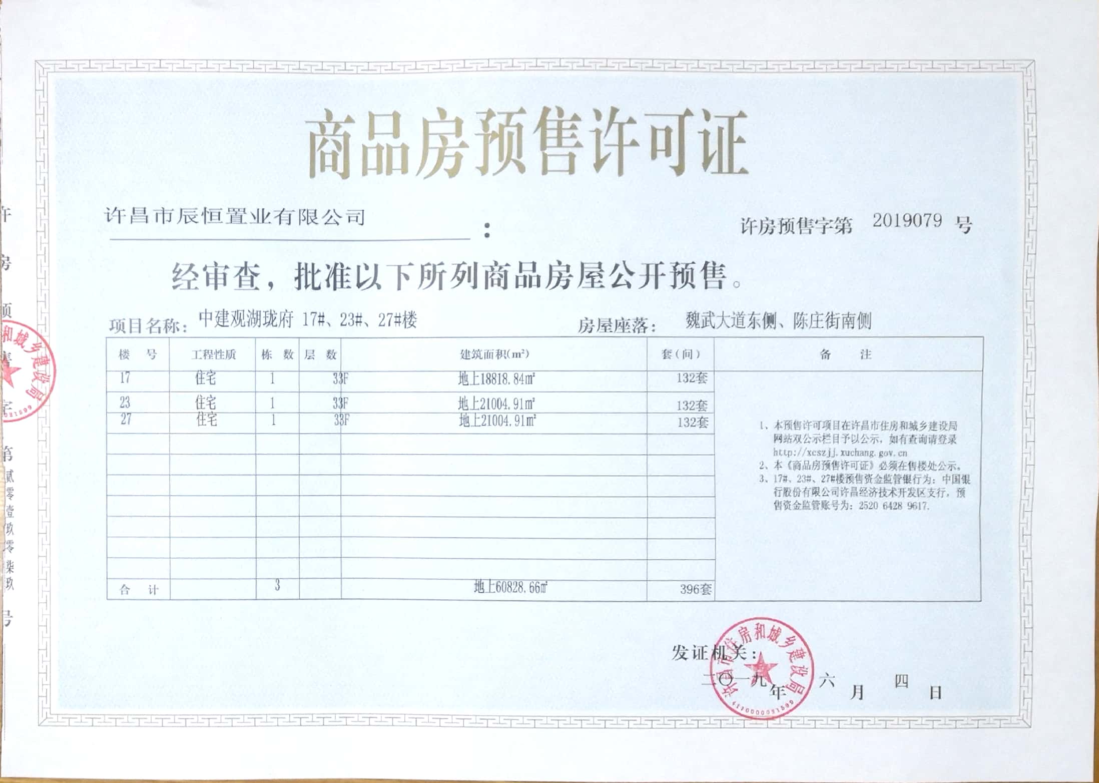 许房预售字第2019079号(许昌市辰恒置业有限公司)