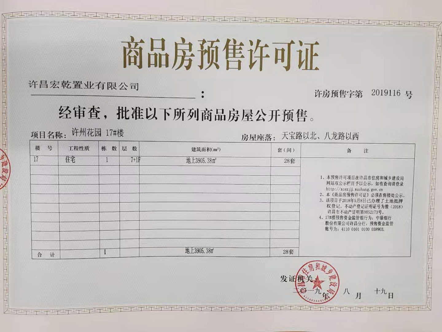 许房预售字第2019116号(许昌宏乾置业有限公司)