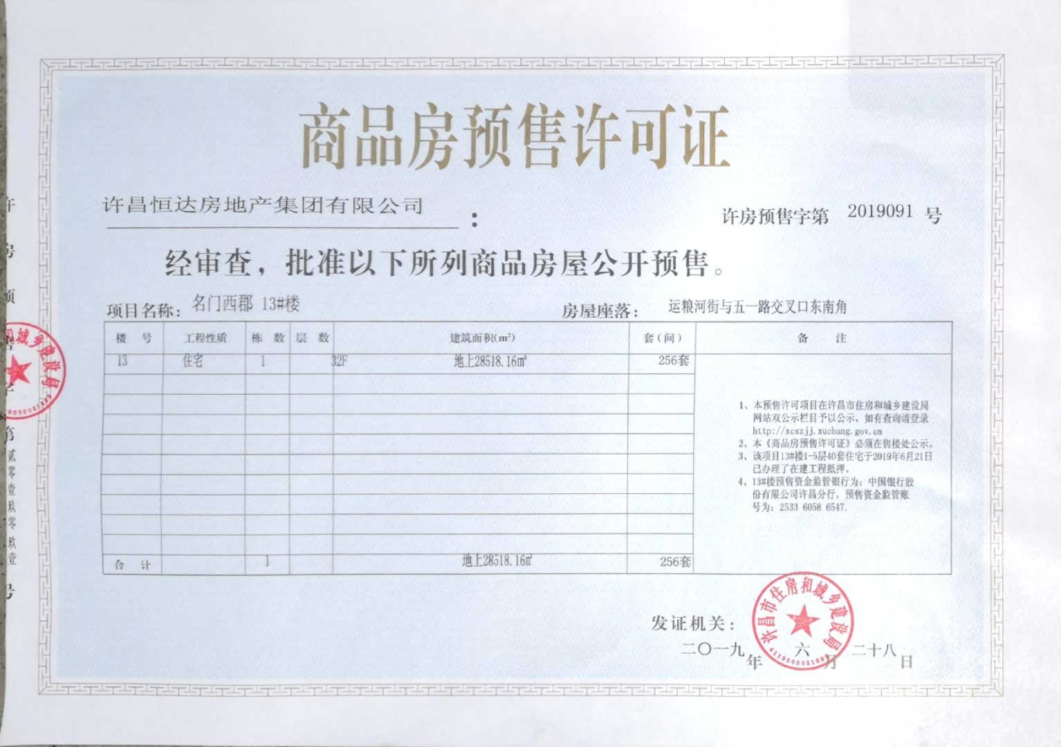 许房预售字第2019091号(许昌恒达房地产集团有限公司)