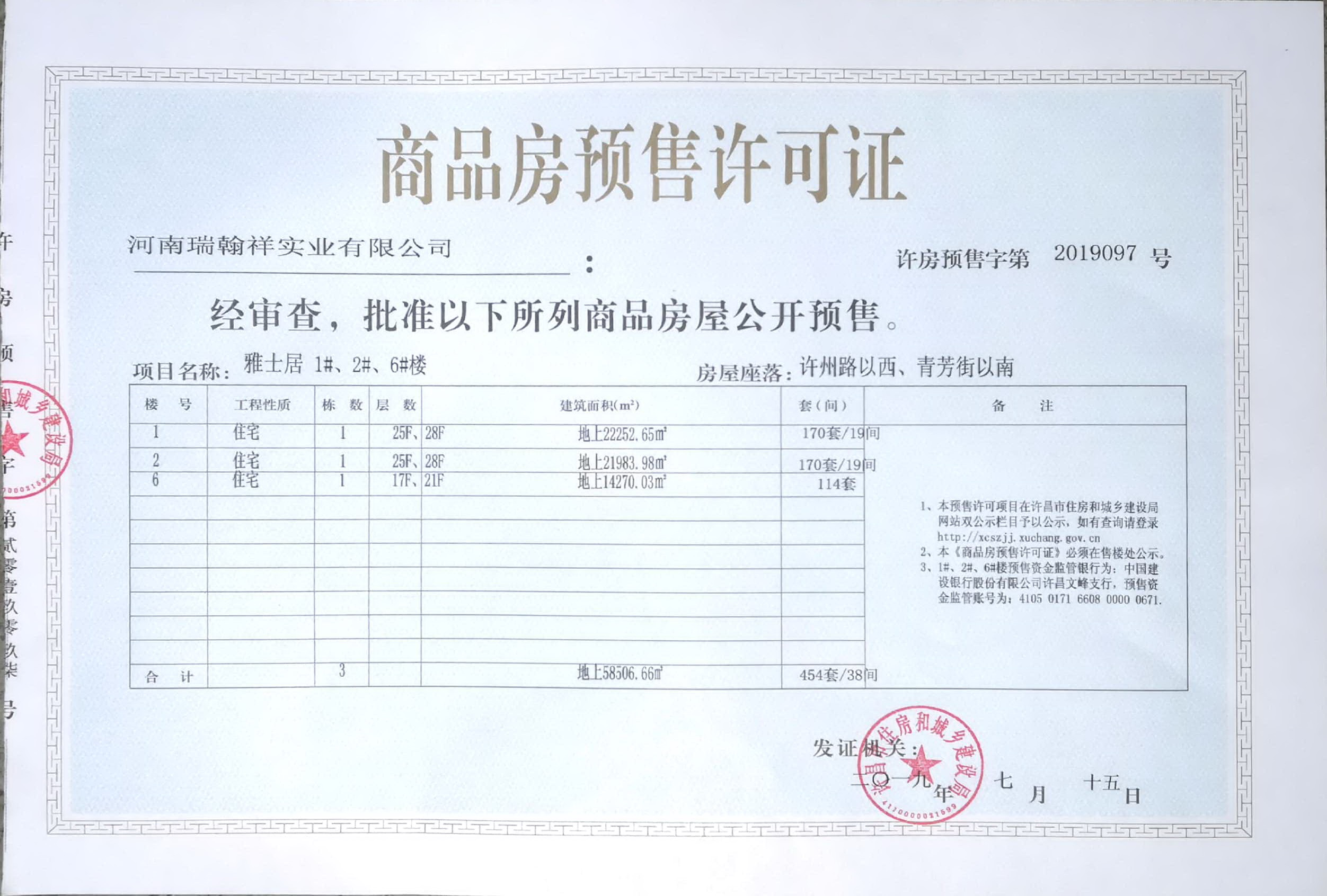 许房预售字第2019097号(河南瑞翰详实业有限公司)