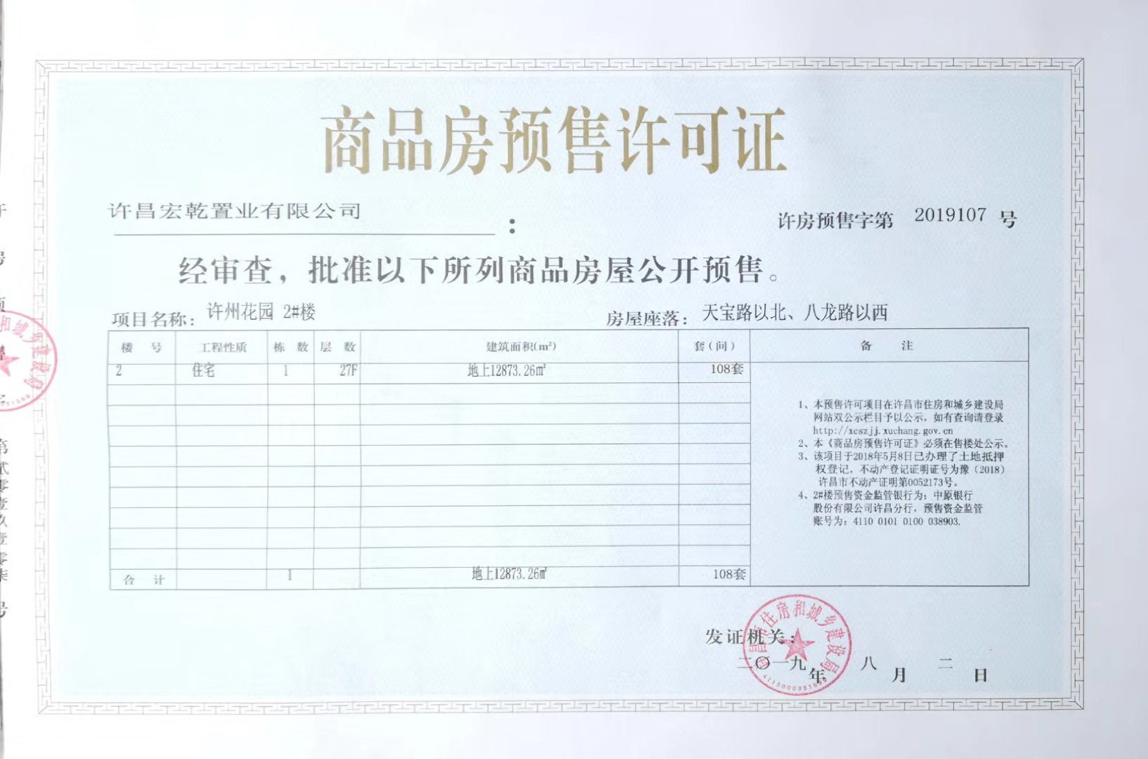许房预售字第2019107号(许昌宏乾置业有限公司)