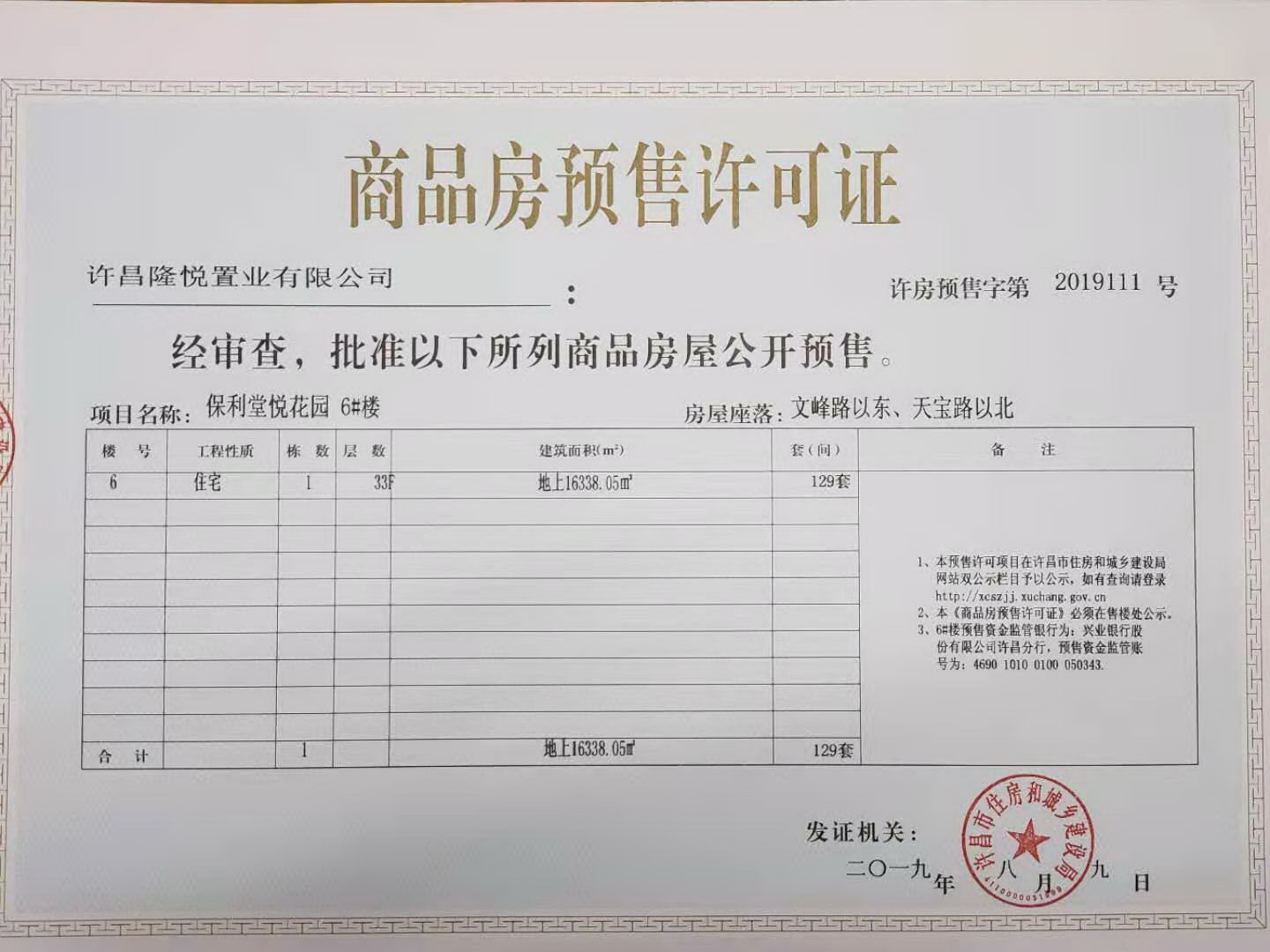 许房预售字第2019111号(许昌隆悦置业有限公司)