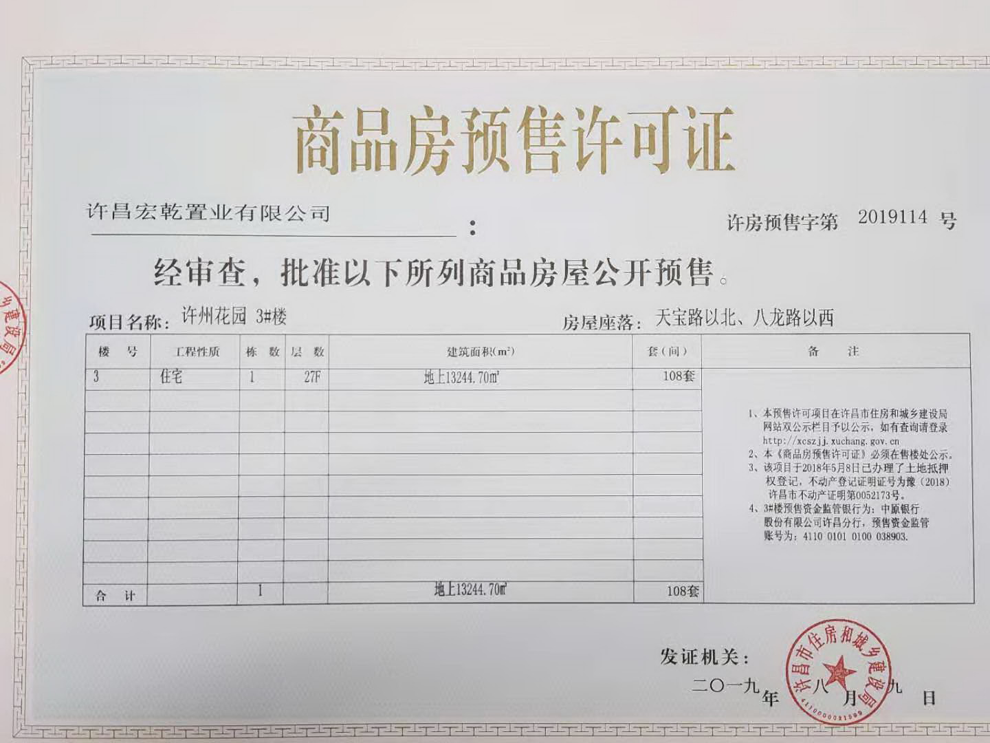 许房预售字第2019114号(许昌宏乾置业有限公司)