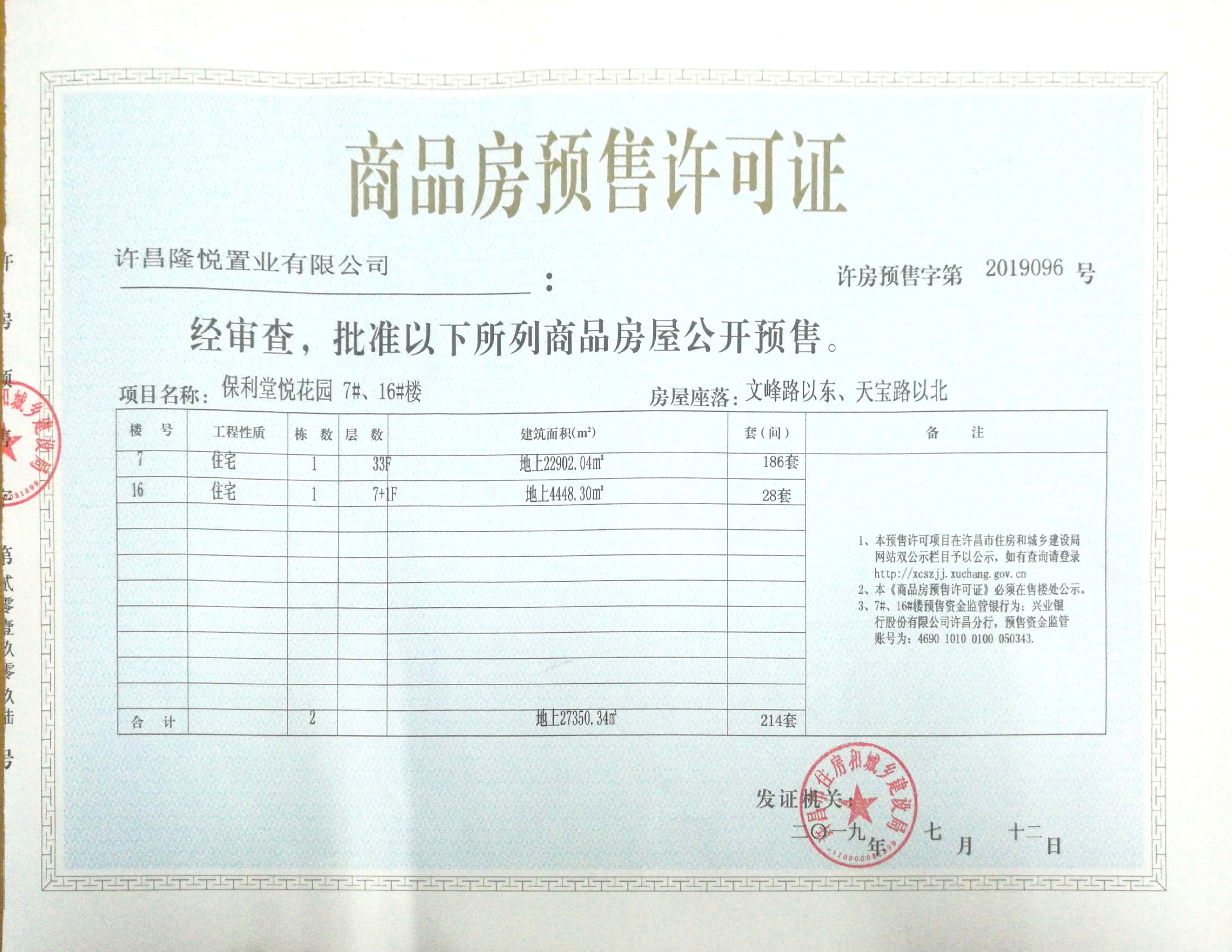 许房预售字第2019096号(许昌隆悦置业有限公司)