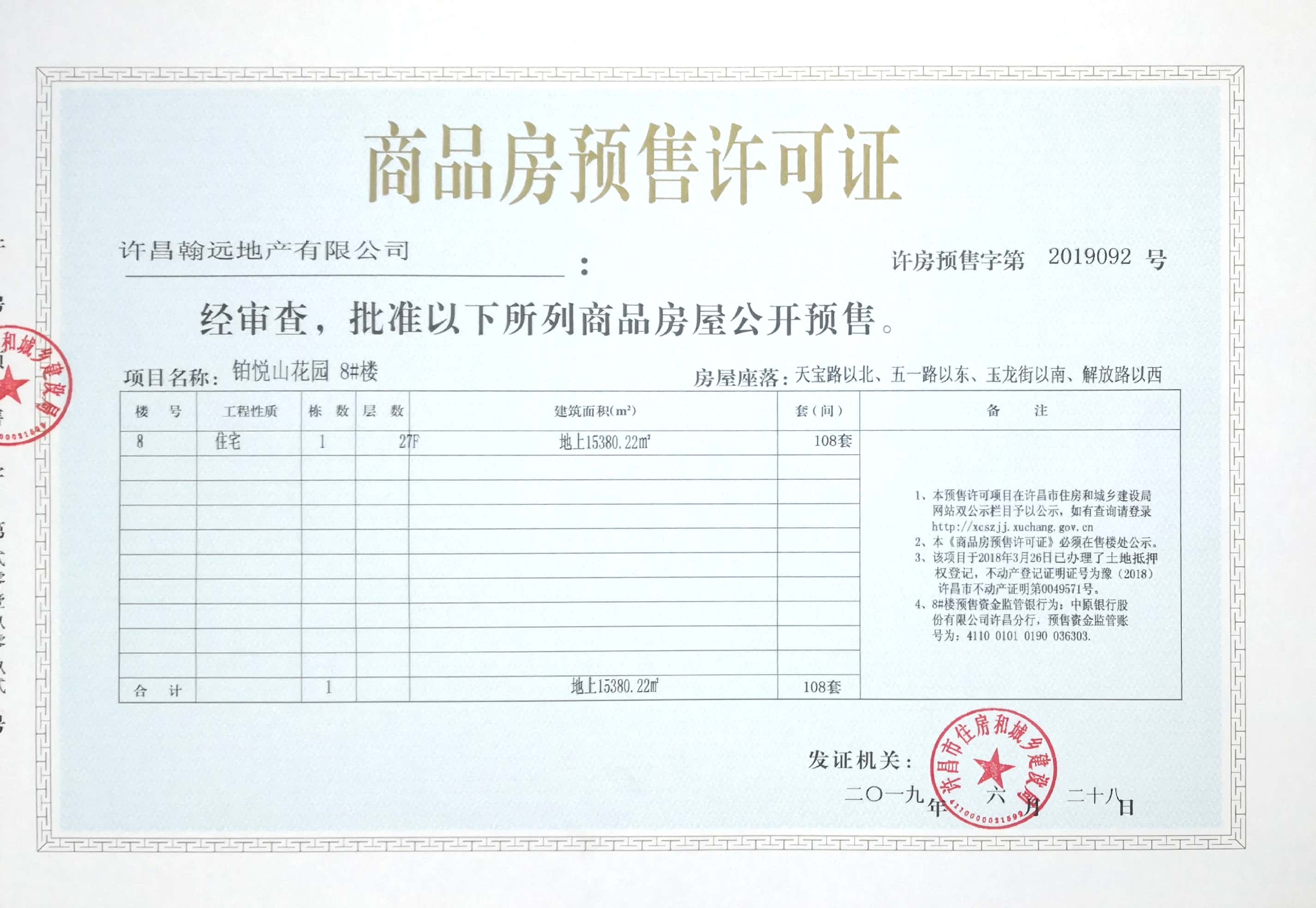 许房预售字第2019092号(许昌翰远地产有限公司)