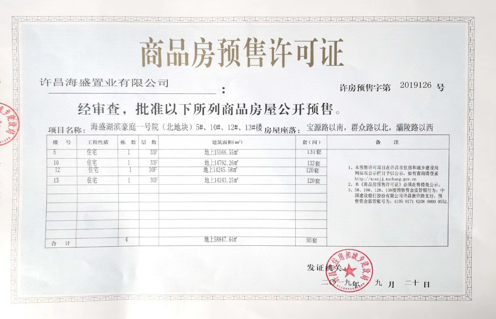许房预售字第2019126号(许昌海盛置业有限公司)