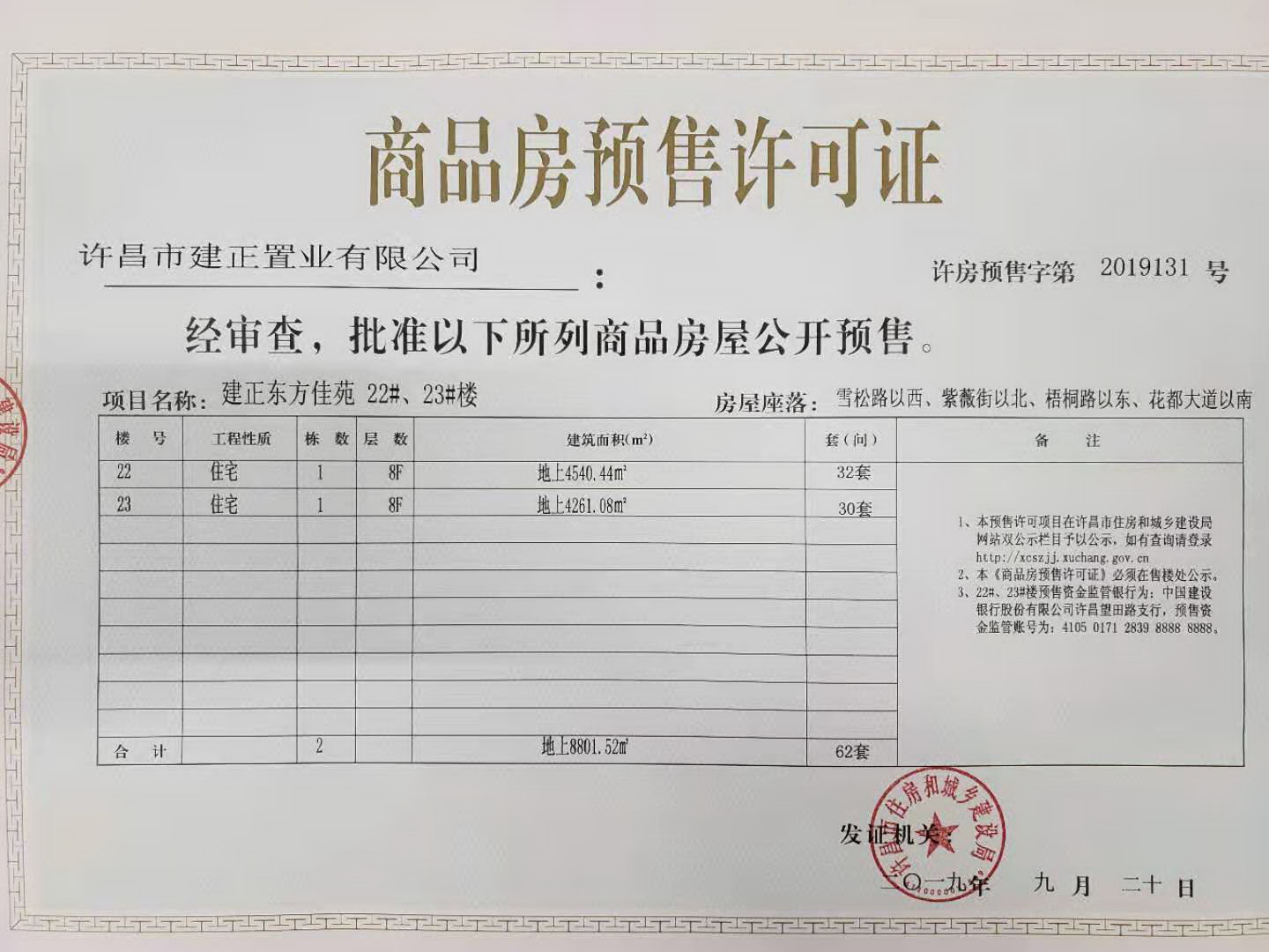 许房预售字第2019131号(许昌市建正置业有限公司)