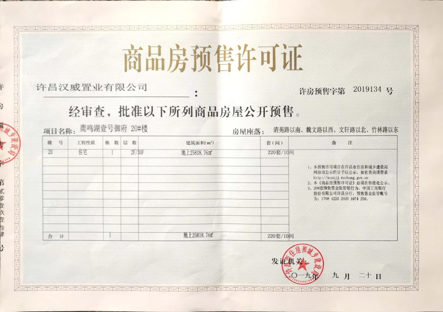 许房预售字第2019134号(许昌汉威置业有限公司)
