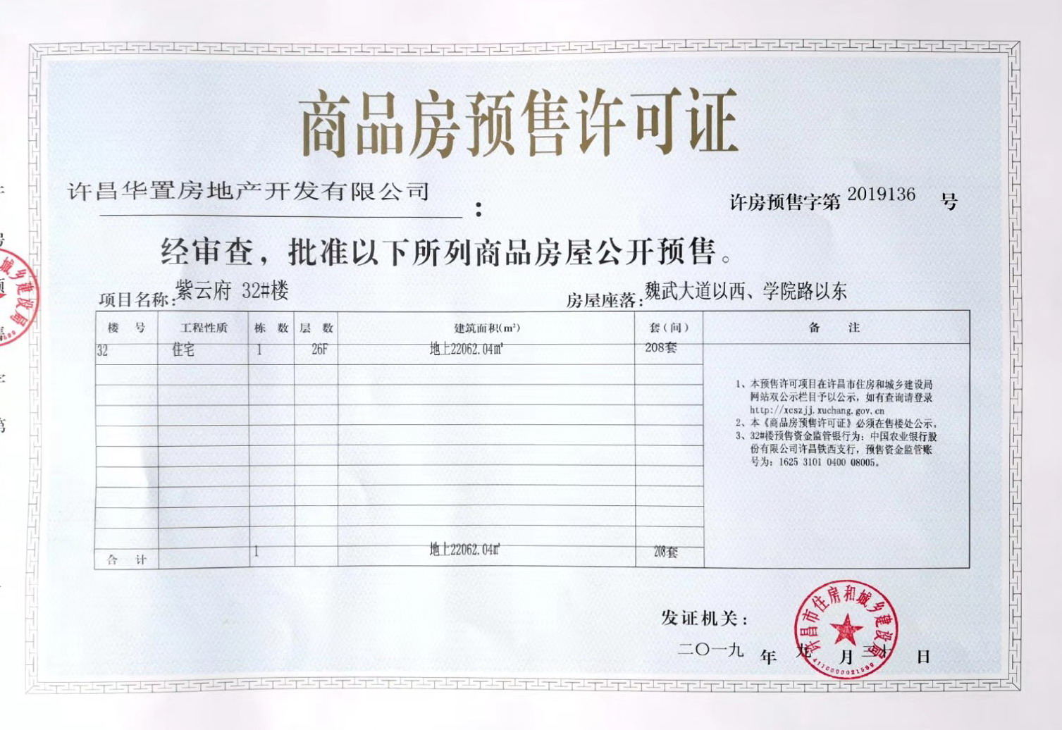 许房预售字第2019136号(许昌华置房地产开发有限公司)