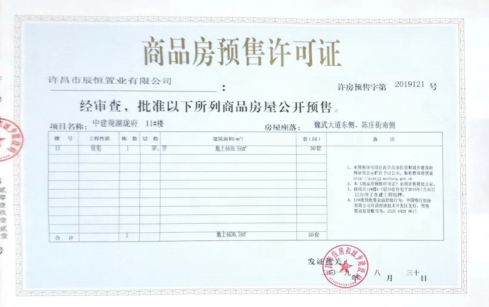 许房预售字第219121号(许昌市辰恒置业有限公司)