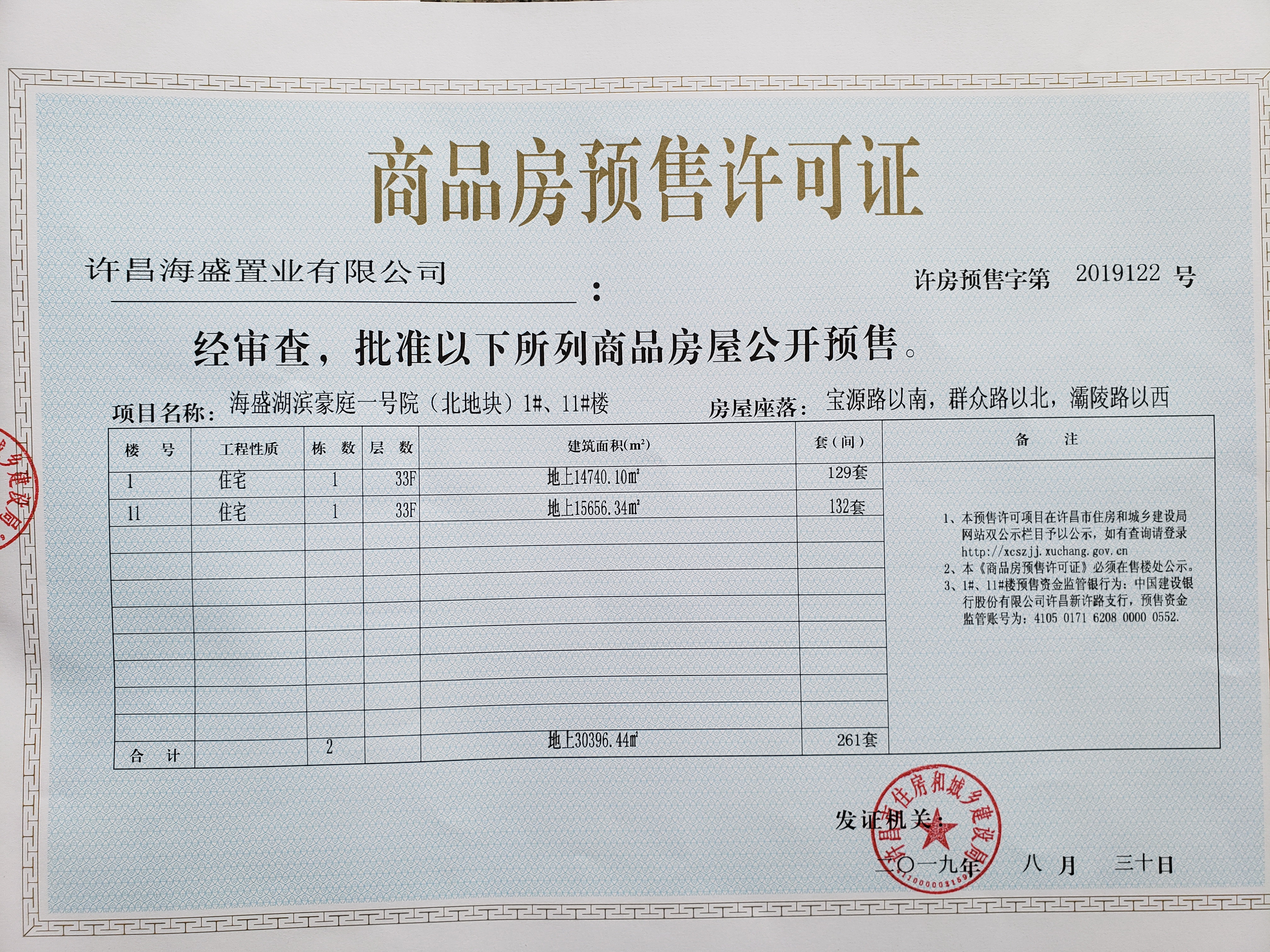 许房预售字第2019122号(许昌海盛置业有限公司)