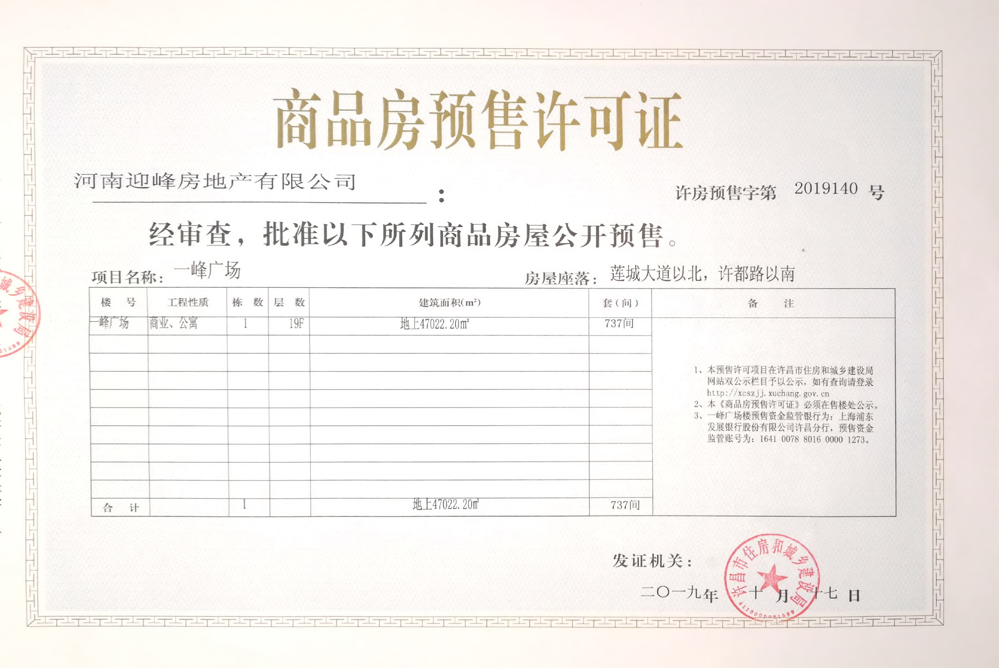 许房预售字第2019140号(河南迎峰房地产有限公司)