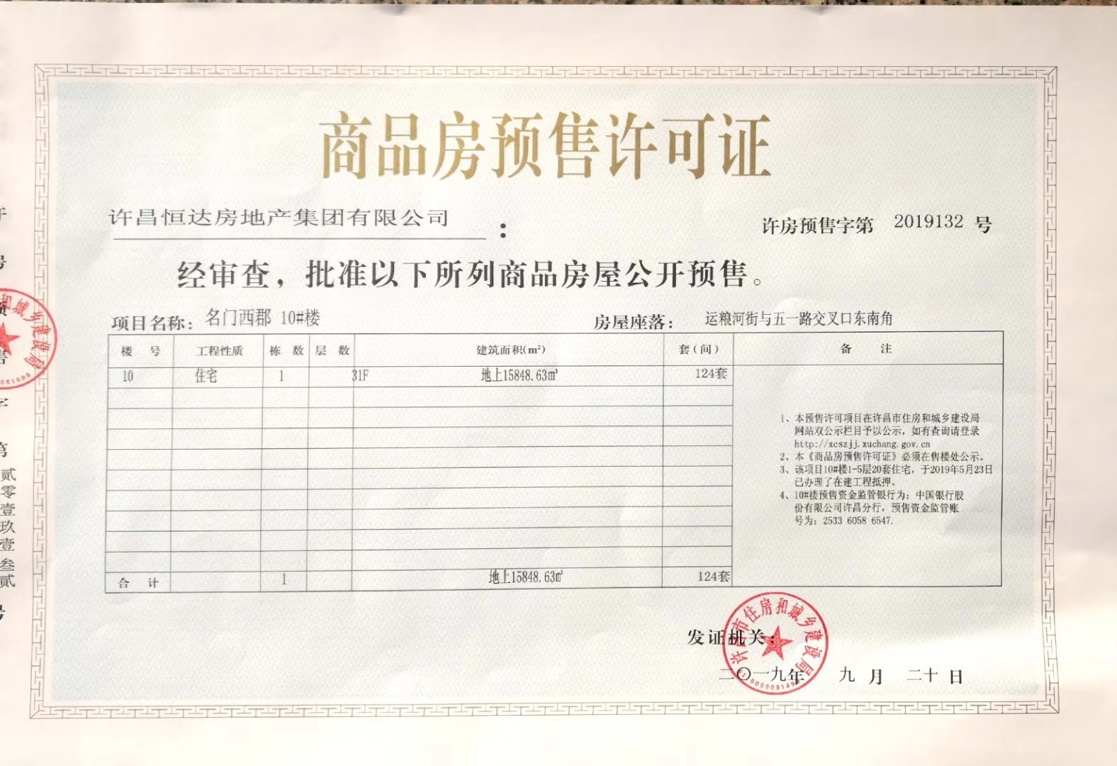 许房预售字第2019132号(许昌恒达房地产集团有限公司)