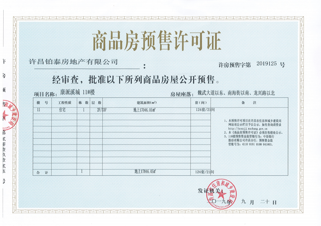许房预售字第2019125号(许昌铂泰房地产有限公司)