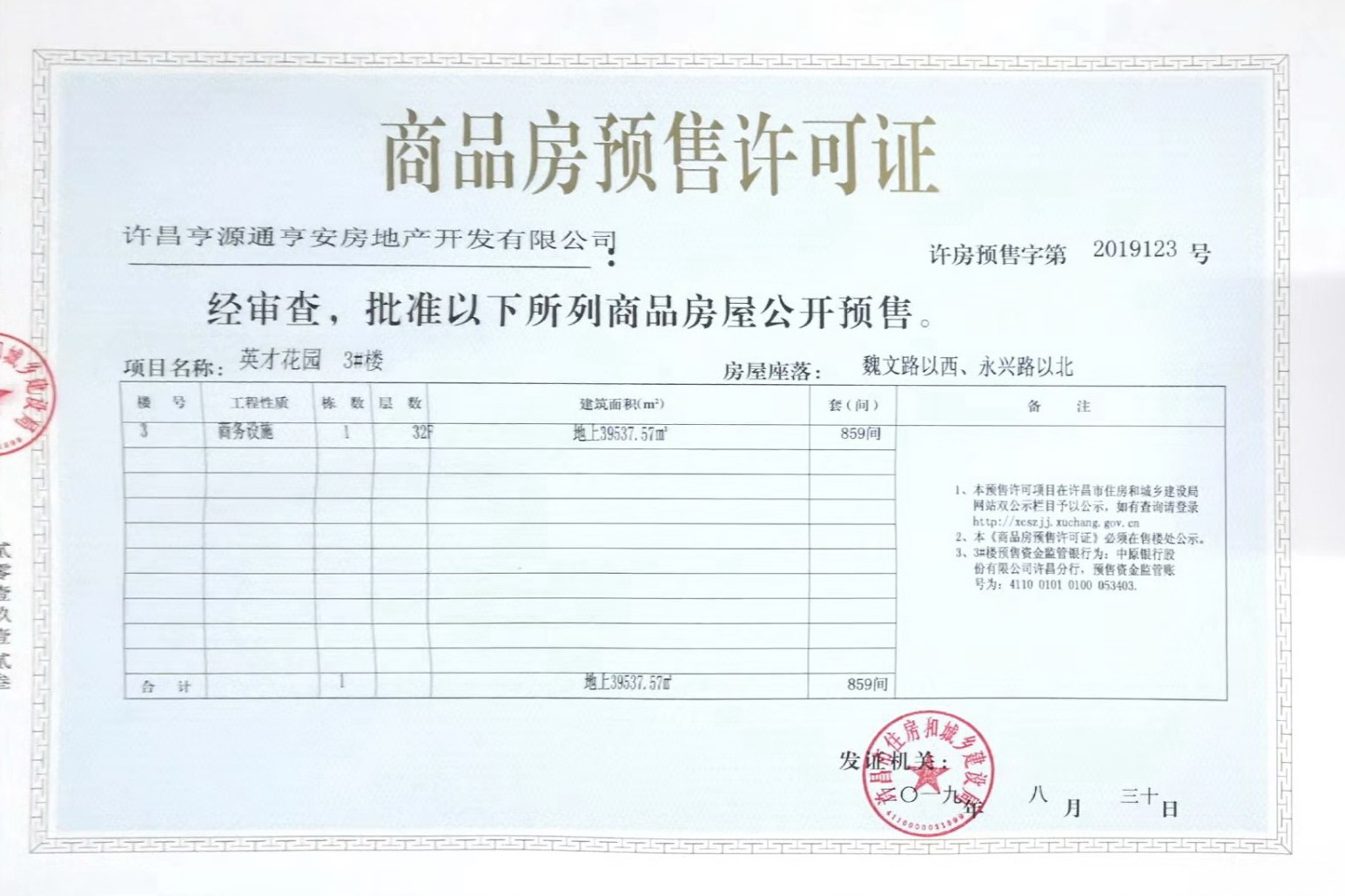 许房预售字第2019123号(许昌亨源通亨安房地产开发有限公司)