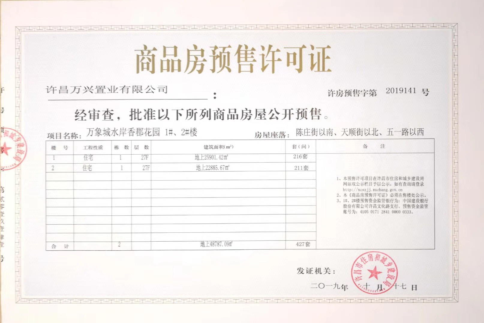 许房预售字第2019141号(许昌万兴置业有限公司)