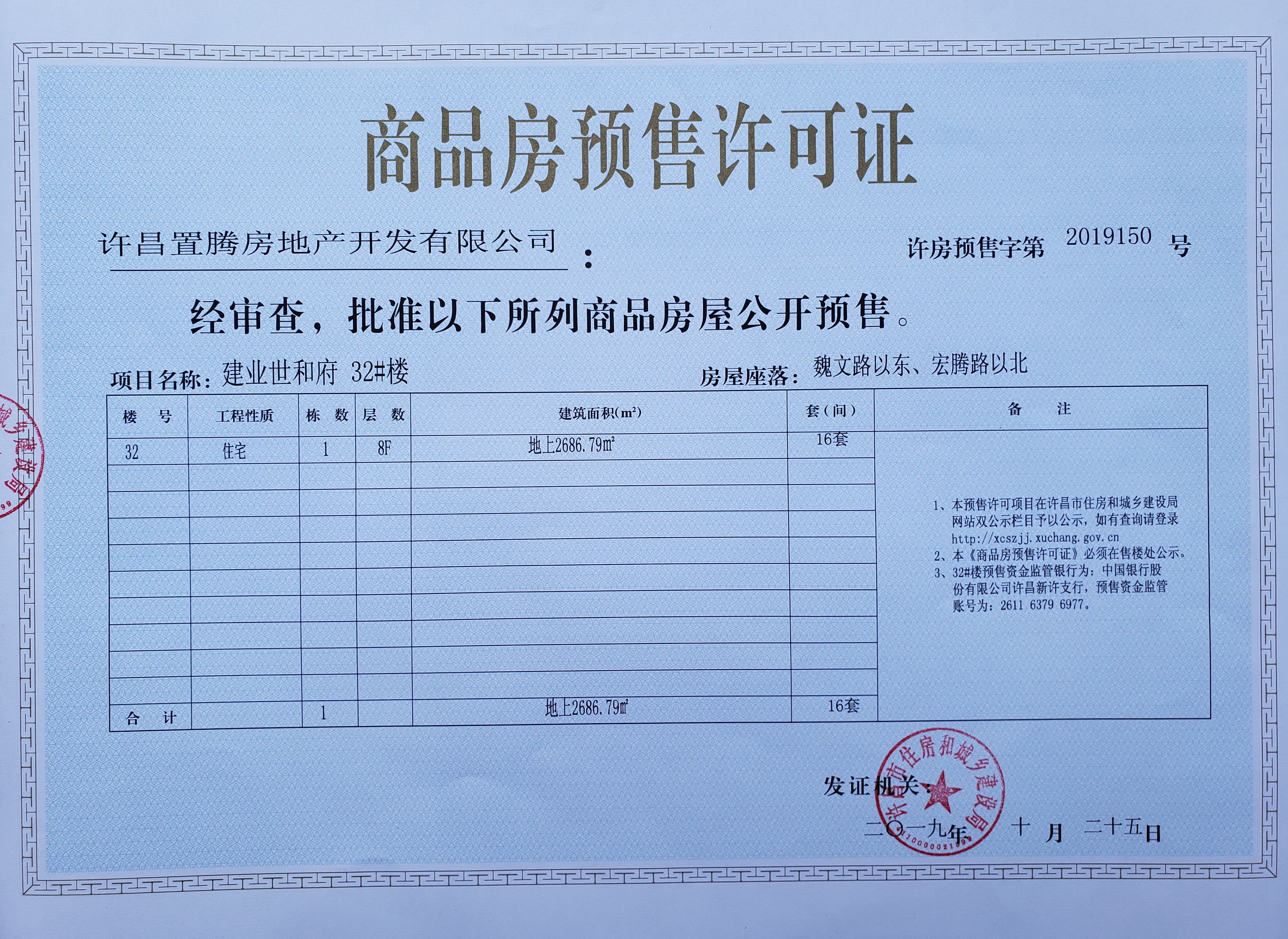 许房预售字第2019150号(许昌置腾房地产开发有限公司)