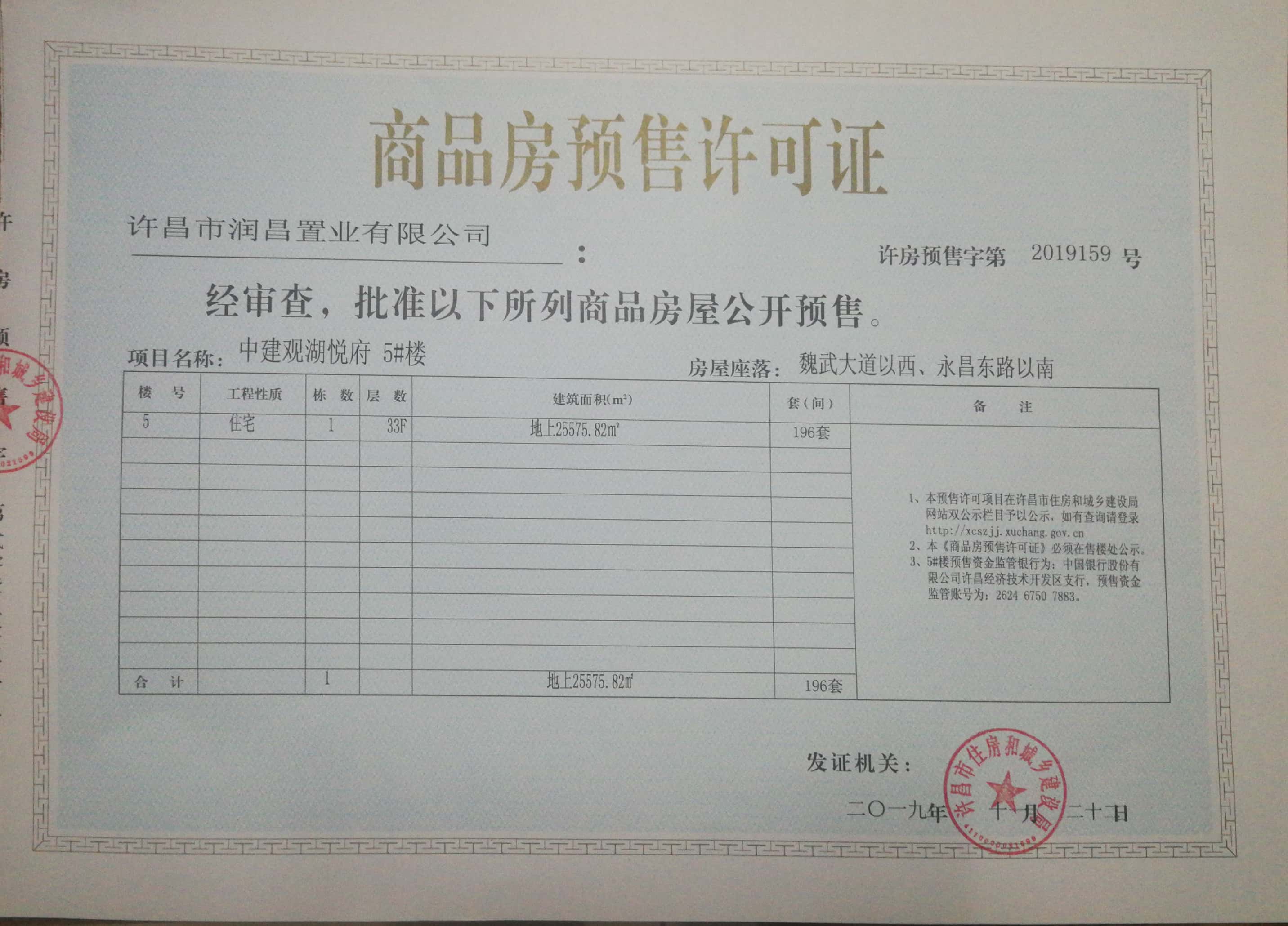 许房预售字第2019159号(许昌市润昌置业有限公司)
