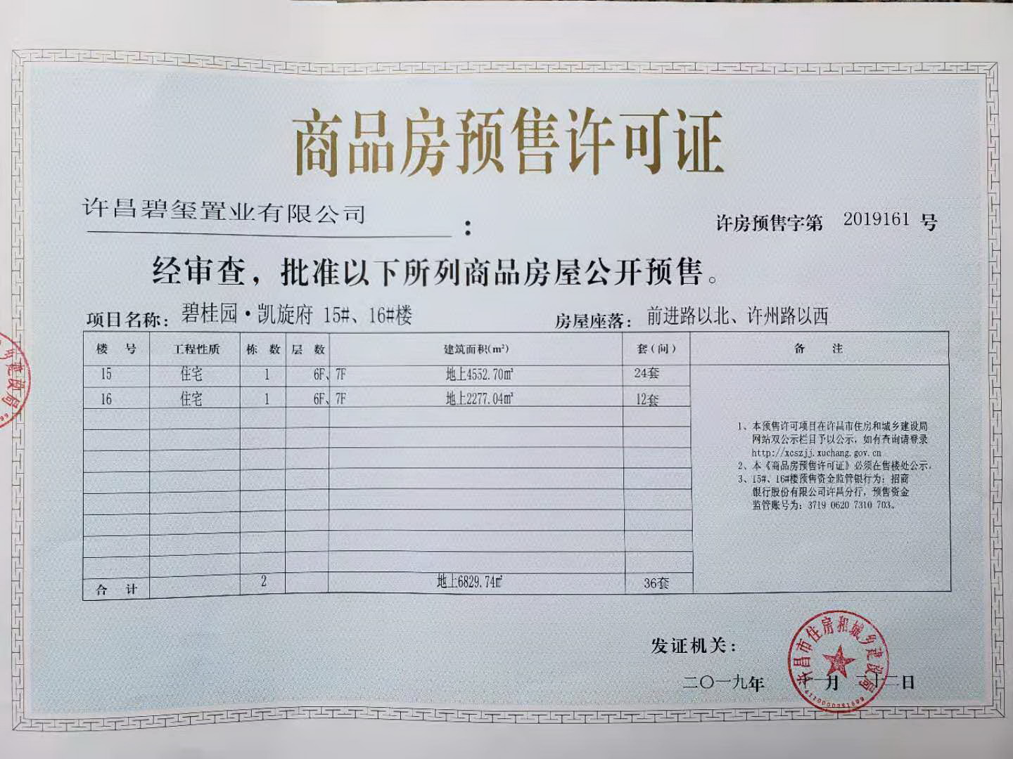 许房预售字第2019161号(许昌碧玺置业有限公司)