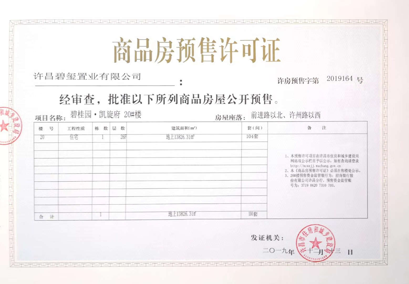 许房预售字第2019164号(许昌碧玺置业有限公司)