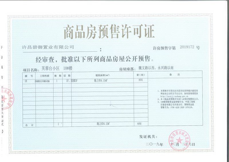 许房预售字第2019172号(许昌碧御置业有限公司)