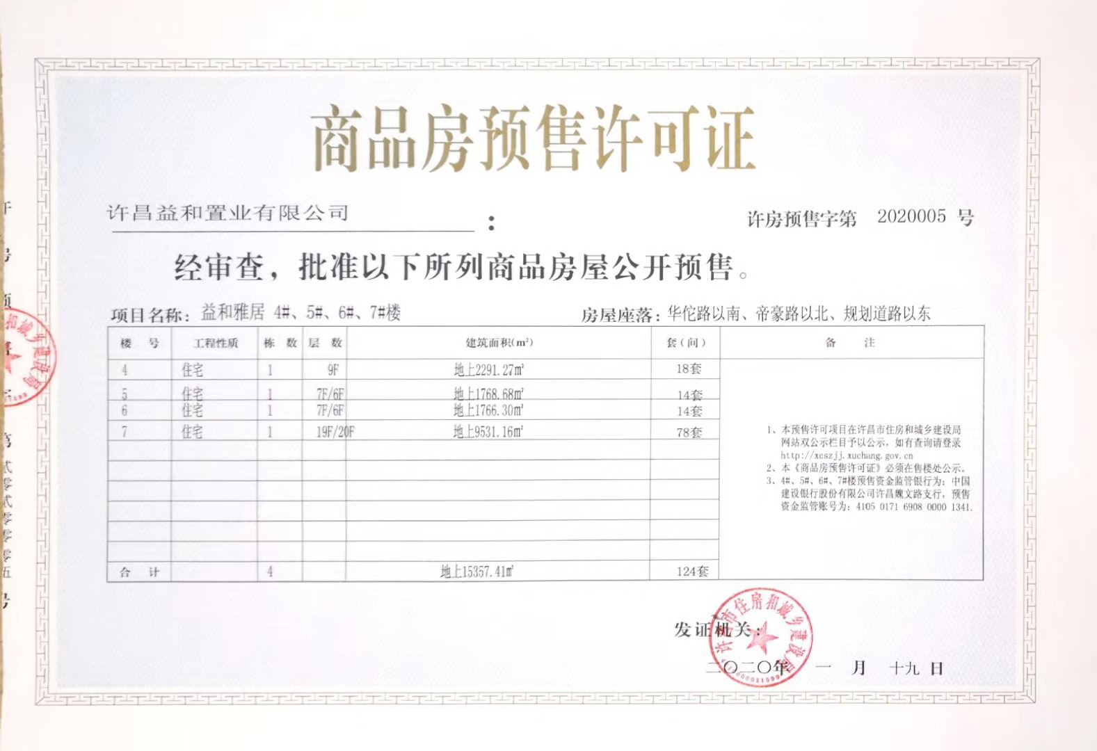 许房预售字第2020005号(许昌益和置业有限公司)
