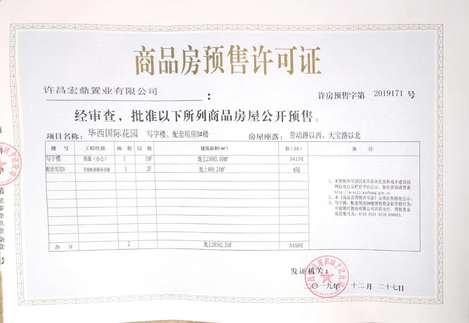 许房预售字第2019171号(许昌宏鼎置业有限公司)
