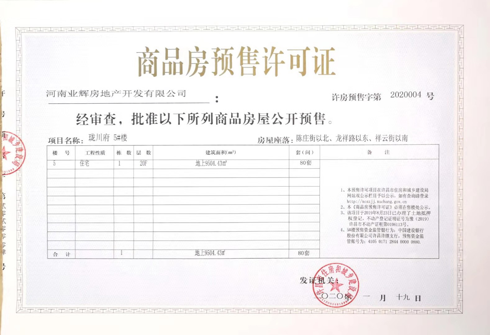 许房预售字第2020004号(河南业辉房地产开发有限公司)