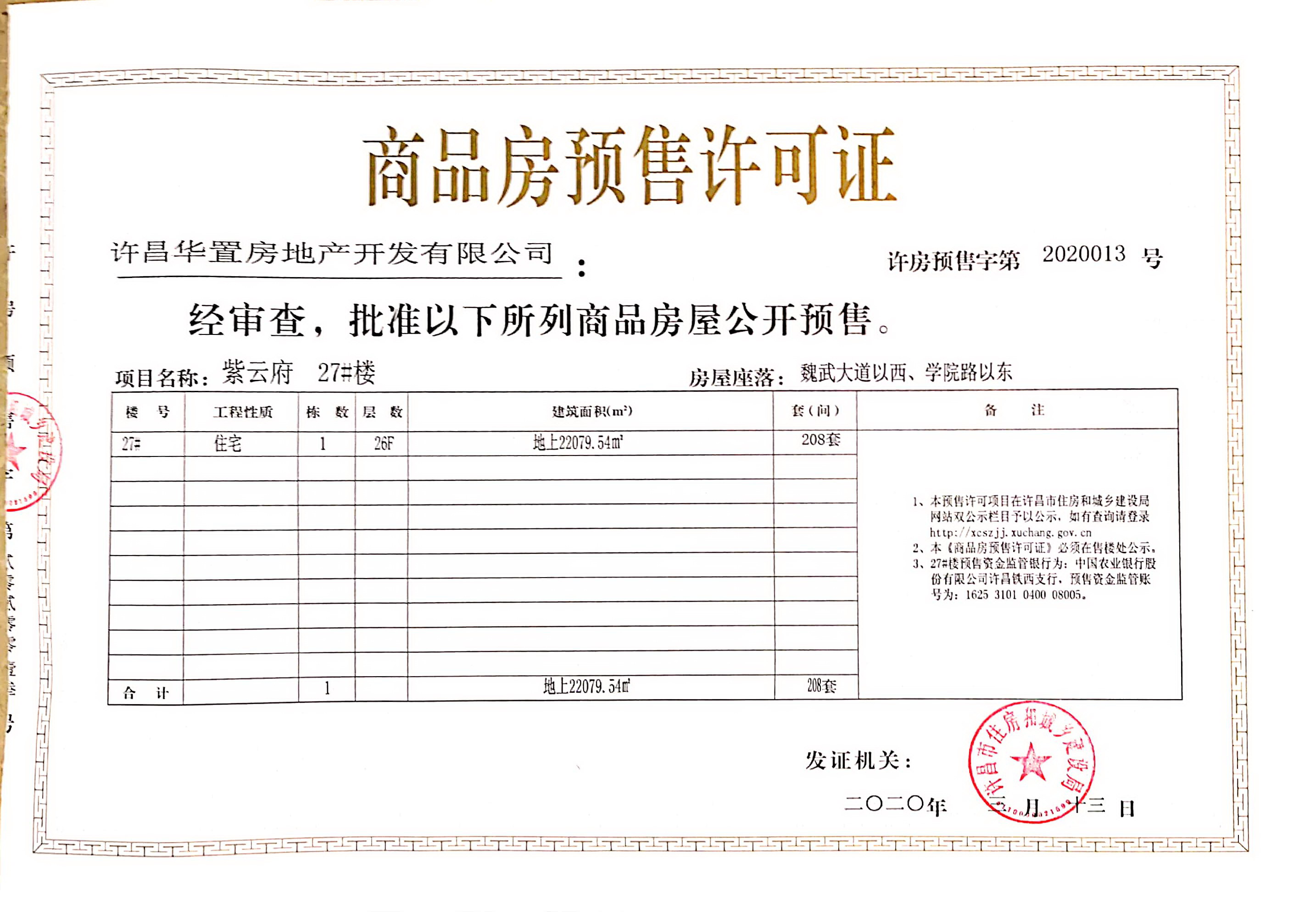 许房预售字第2020013号(许昌华置房地产开发有限公司)