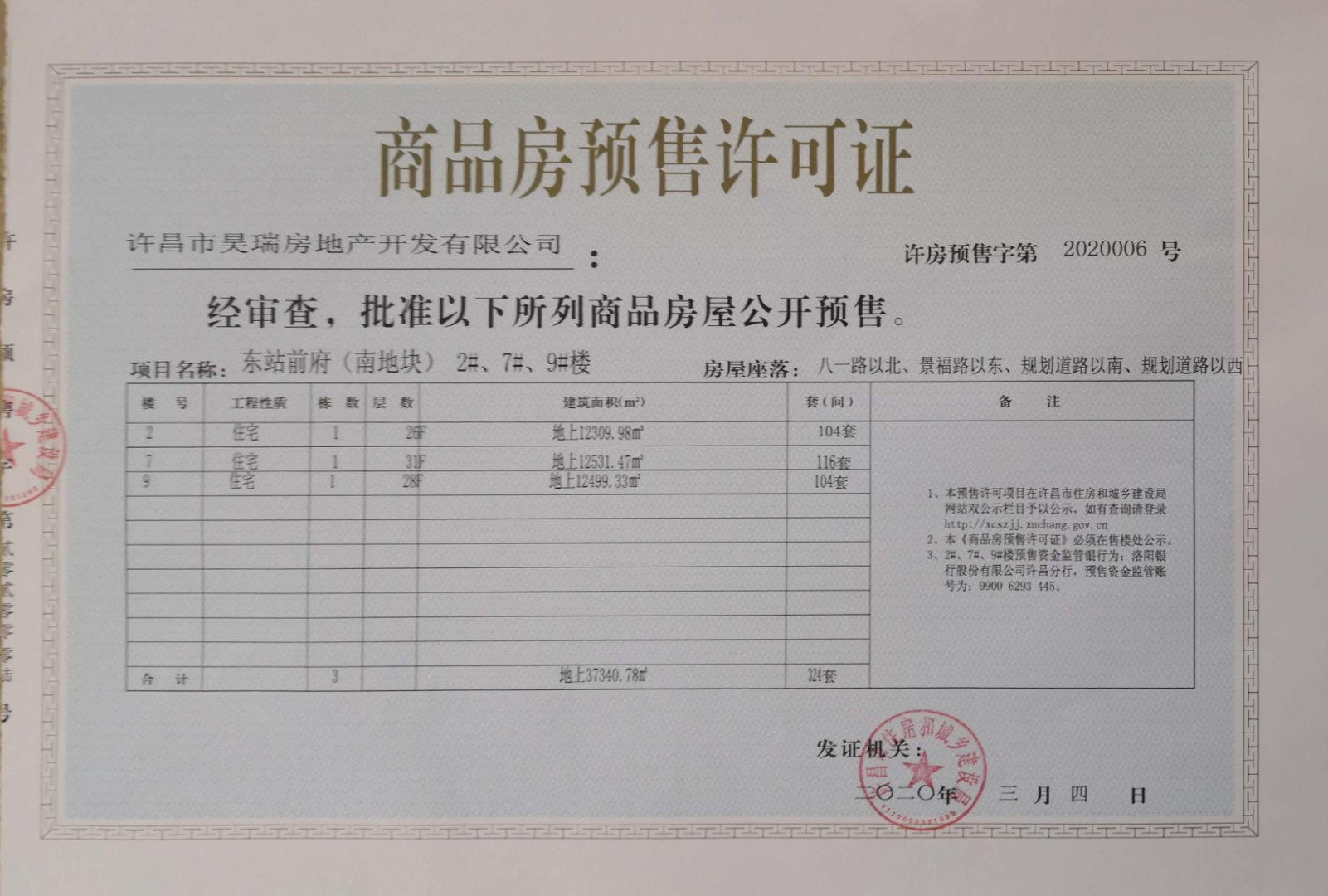 许房预售字第2020006号(许昌市昊瑞房地产开发有限公司)